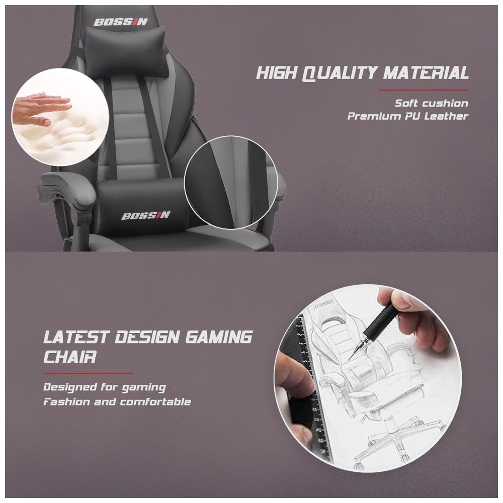 BOSSIN Cadeira de Escritório Gamer Reclinável e Ergonômica com Apoio para Lombar Azul