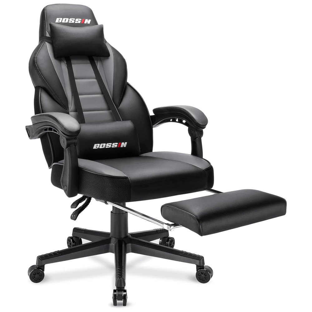 Design ergonômico para várias ocasiões Almofada maior, encosto alto e design de apoio para os pés extensível fornecem uma experiência confortável, perfeita para presente de natal, escritório, casa, ocasião de conferência e jogos intensos.
