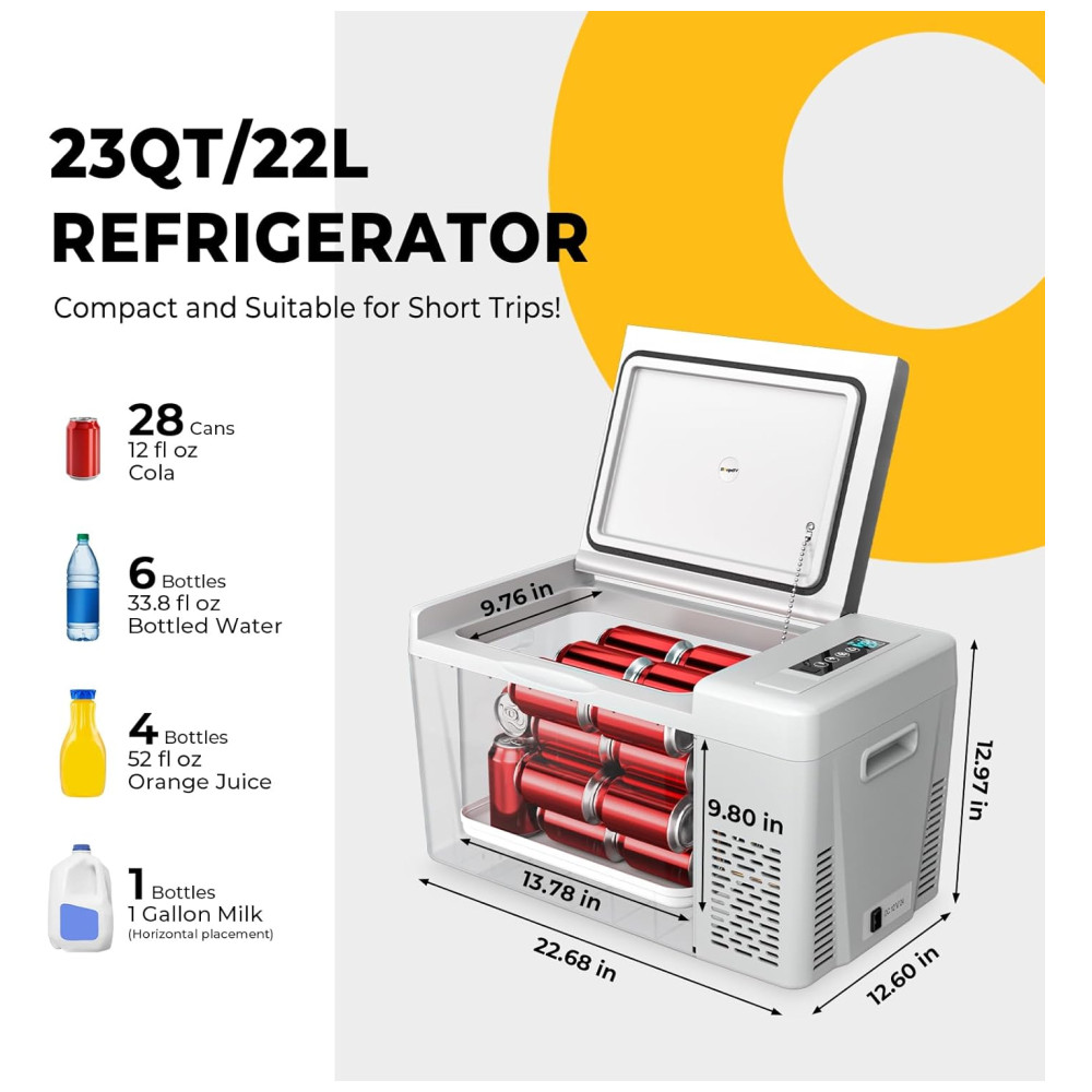 BougeRV Geladeira de 12 volts com tampa de 23 quart geladeira de carro 12V 23 quart freezer portátil refrigerador freezer 12 24 V DC 110 240 volts AC 7 50 para caminhão RV SUV cinza 23 quart com tampa