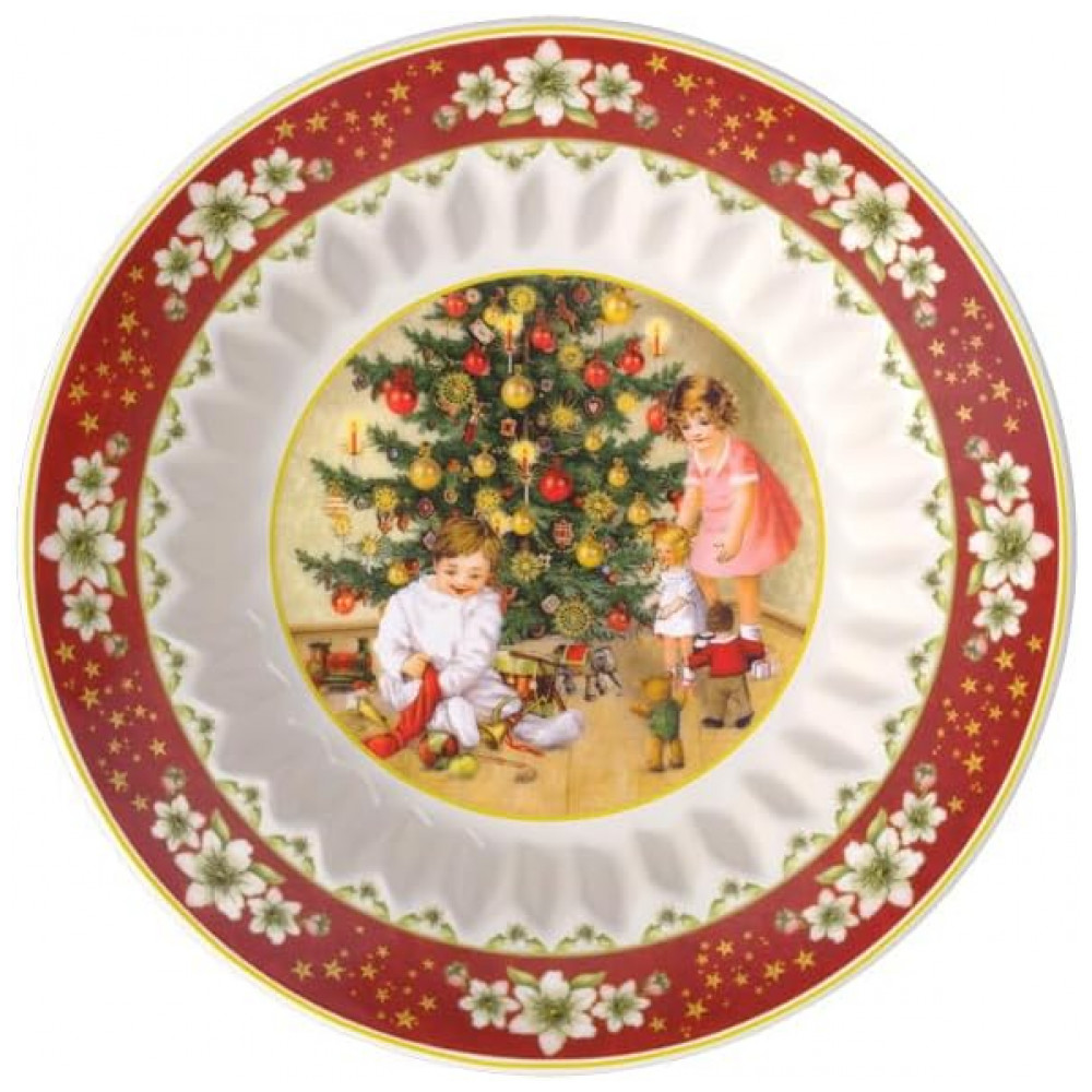 Bowl Tema de Natal com Estilo Clássico Formato Redondo e Material Porcelana Premium Villeroy & Boch Branca e Vermelha