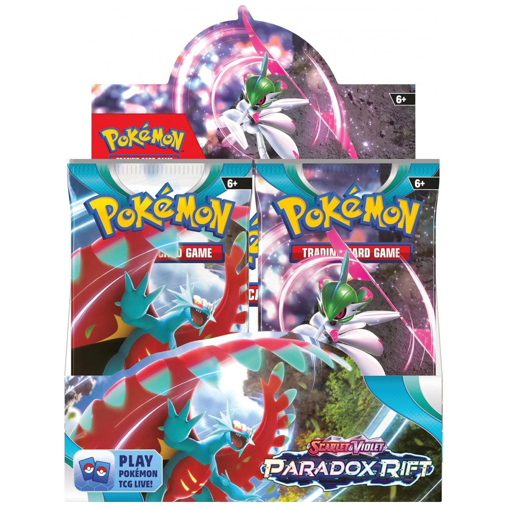 A Pokémon TCG: Scarlet & Violet – Paradox Rift Booster Display é uma caixa de display da expansão Paradox Rift com 36 pacotes de booster selados, pensada para quem quer ampliar rapidamente a coleção ou montar vários baralhos com cartas da série. A coleção destaca Pokémon Ancestrais como Roaring Moon ex e Sandy Shocks ex ao lado de Pokémon Futuristas como Iron Valiant ex e Iron Hands ex, além de Pokémon como Garchomp ex e Mewtwo ex em formas Terastal com tipos alterados.