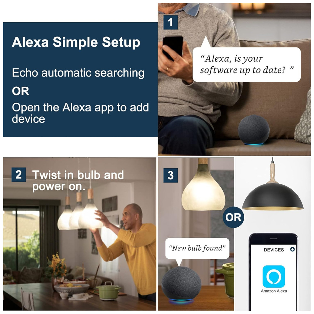 Controle de voz inteligente As lâmpadas inteligentes BR30 wifi led, você só precisa enviar comandos de voz para ligar, desligar a luz ou definir a lâmpada para o brilho para criar uma atmosfera relaxante e confortável. por exemplo, Alexa, ligue a lâmpada da sala de estar.