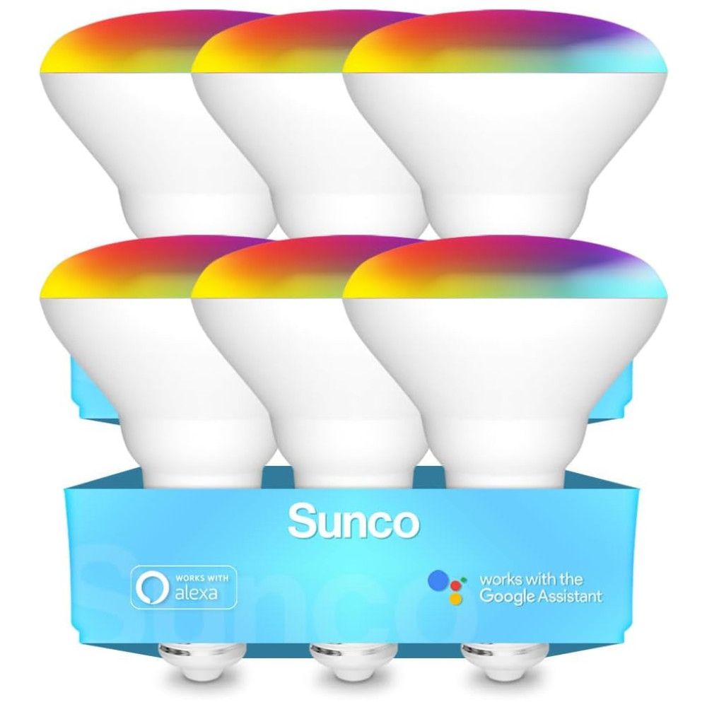 BR30 Lâmpada LED Colorida Inteligente Wi Fi Controle de Voz 650LM 8W 6 Un SUNCO LIGHTING Azul