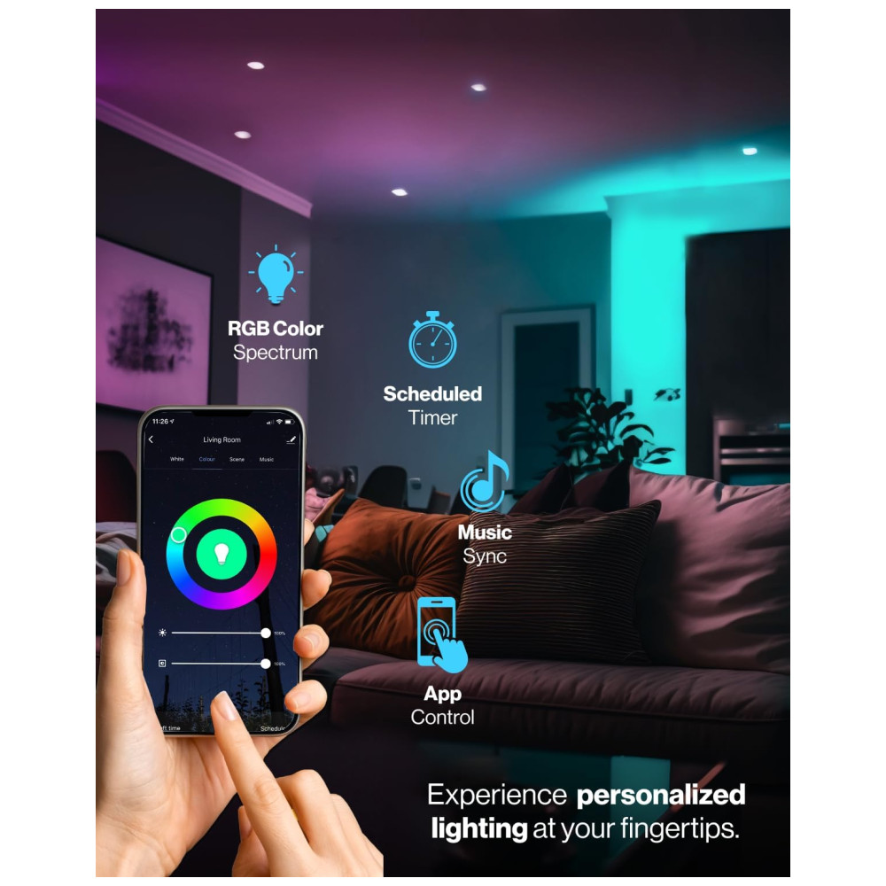 CONTROLE REMOTO Melhore sua casa inteligente com as lâmpadas inteligentes da Sunco. Compatível com Alexa ou Google Assistant para controle de voz para DIM, LIGAR, DESLIGAR ou ALTERAR A COR. Ótimo para latas embutidas.