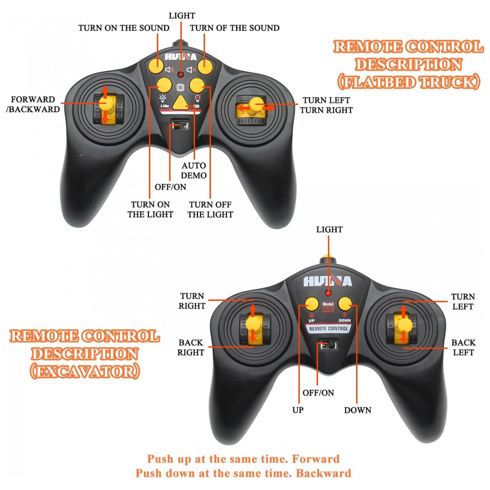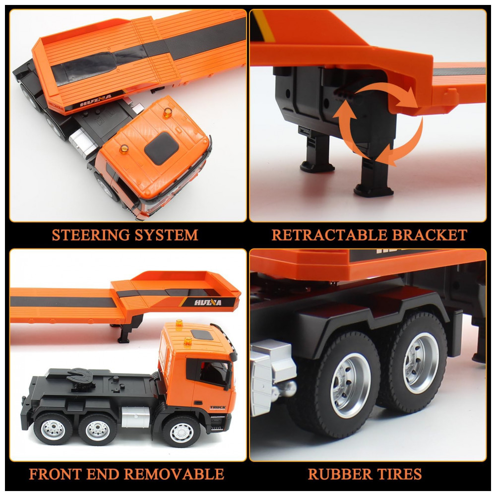 Comande este caminhão semi truck RC de forma realista, com funções avançadas de 9 canais. Além de avançar, retroceder, virar à esquerda/direita, ligar/desligar e funções de apresentação automática, você também controla a escavadeira remotamente. Com 68,58 centímetros de comprimento, este caminhão RC na escala 1:24 é capaz de rebocar vários tipos de veículos. Feito com materiais premium, resistente e seguro, este caminhão semi truck acompanha uma trailer destacável que se estende até 83,82 centímetros. Ideal para presentear crianças de 8 a 12 anos.