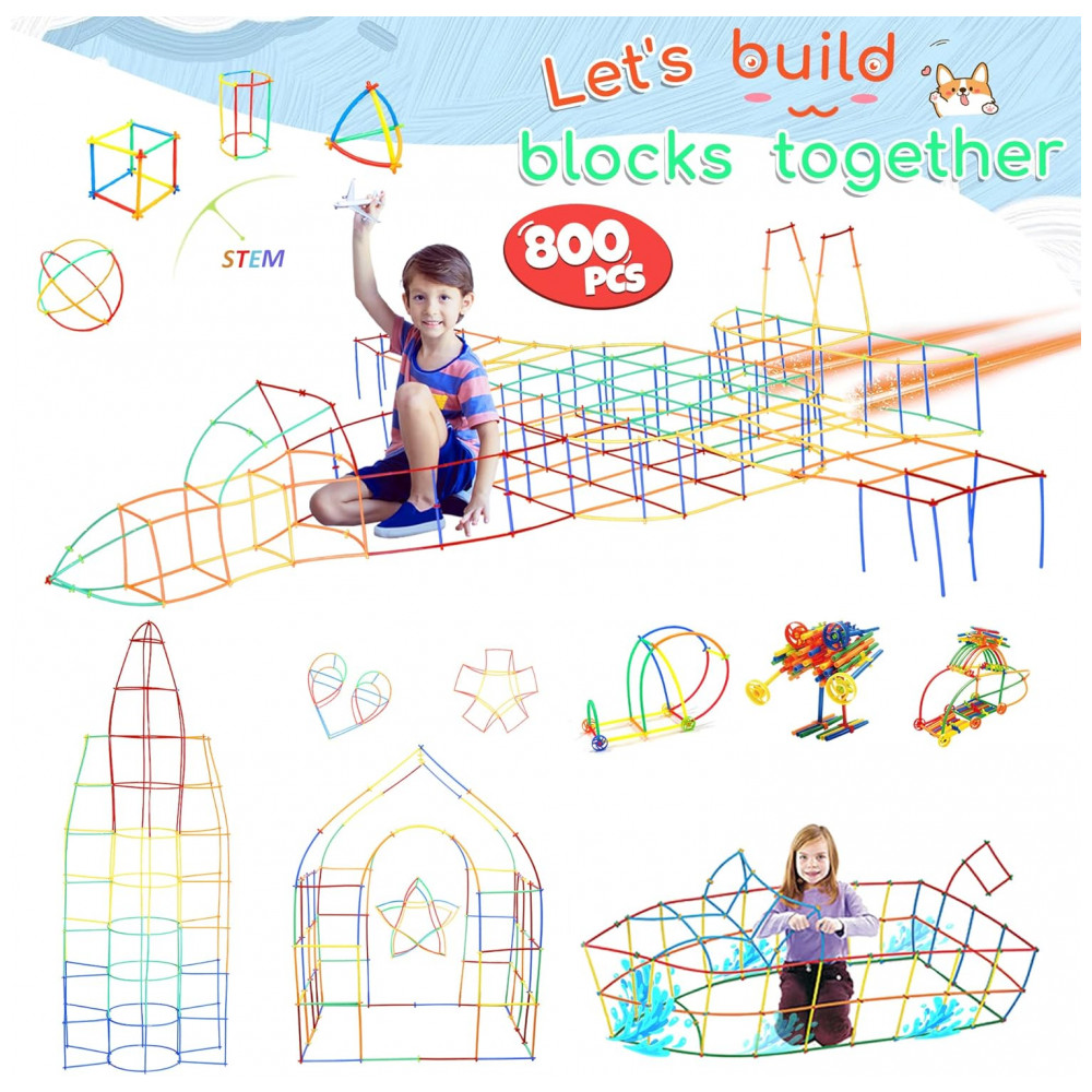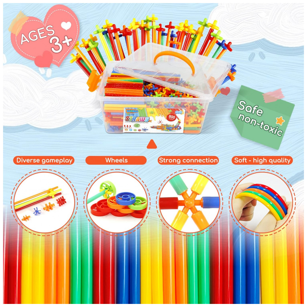 O brinquedo de construção STEM com canudos Ggiibro 800 peças permite montar estruturas tridimensionais com tubos plásticos finos e conectores, indicado para crianças a partir de 3 anos. As peças possibilitam criar aviões, navios, carros, castelos, robôs, animais e formas geométricas variadas, estimulando coordenação motora fina, raciocínio espacial e noções básicas de estrutura. O conjunto pode ser utilizado em casa, salas de aula e centros de educação infantil, em atividades individuais ou em grupo.