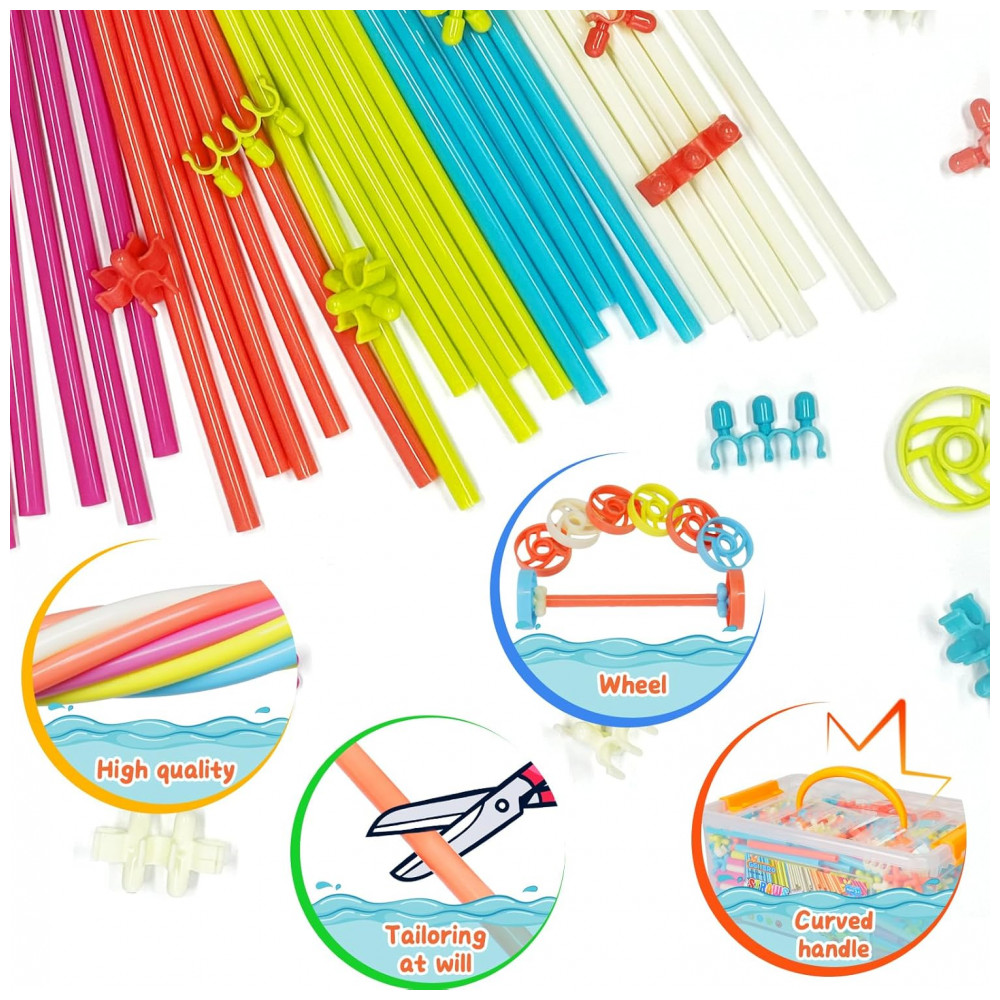 Brinquedo de construção STEM com canudos Ggiibro macaron 600 peças tubos plásticos interligáveis