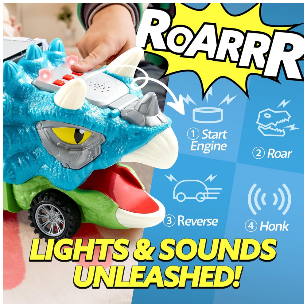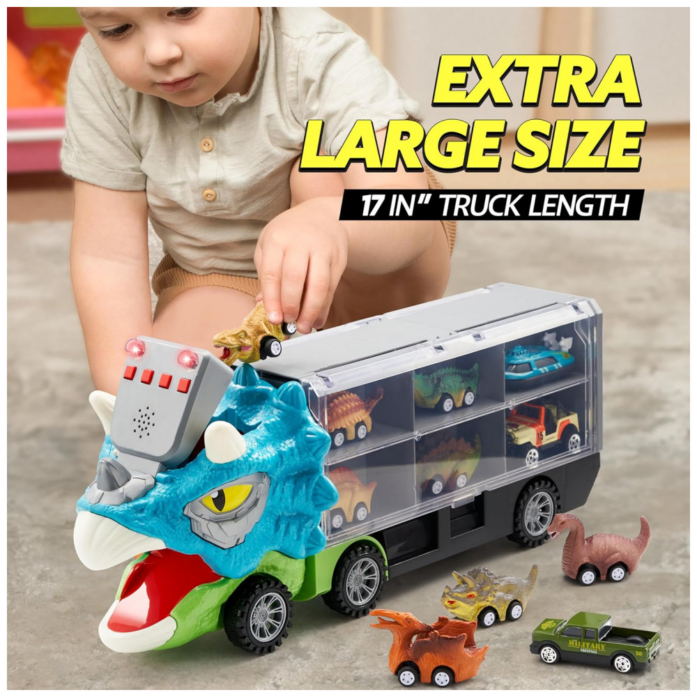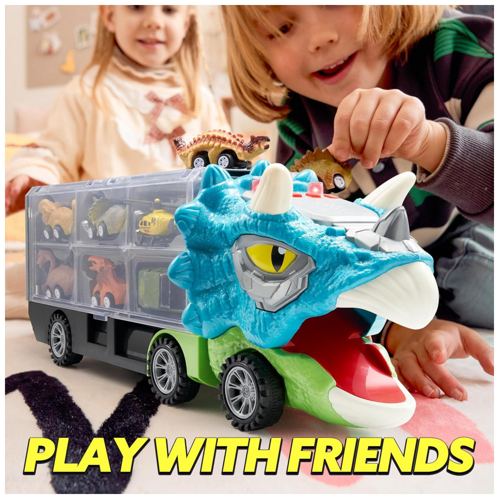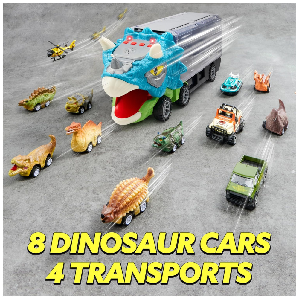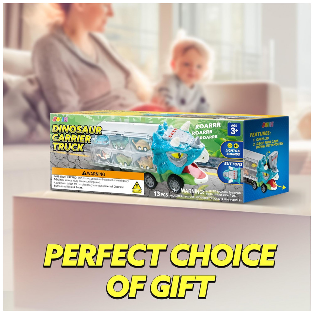 Brinquedo de Dinossauro JOYIN 13 em 1 para Crianças 3-5 anos Caminhão Triceraptor com 12 Carros de Tração Presente de Aniversário para Meninos