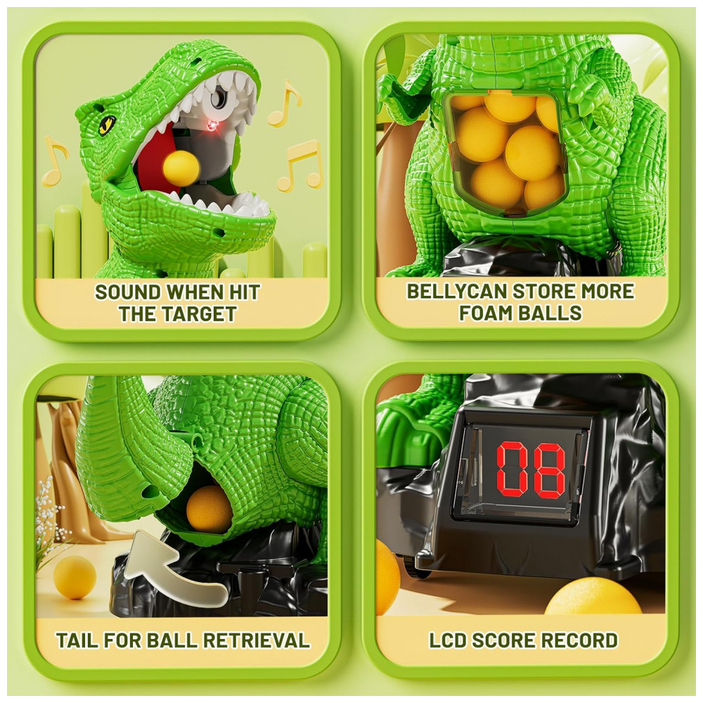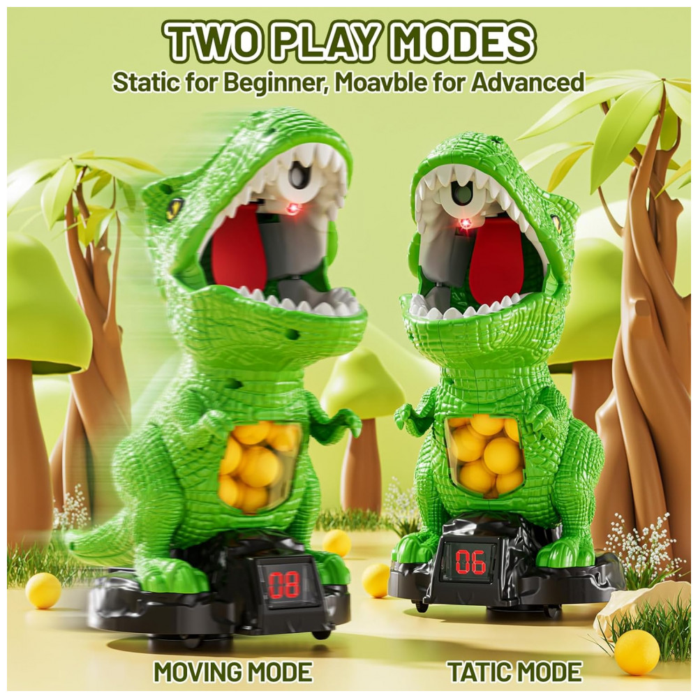 O Brinquedo Multifuncional de Dinossauro é equipado com 1 alvo de tiro de dinossauro, 1 arma de ar, 1 par de óculos e 24 balas de espuma. Você pode adicionar água pela boca para simular vapor. Ao acertar o alvo, o dinossauro pode fugir emitindo um rugido. Adequado para uso interno e externo, ideal para encontros familiares e interação entre crianças. Possui dois modos de tiro: estático, mais fácil para crianças e iniciantes, e móvel, no qual a roda automática evita obstáculos. Presente ideal de aniversário para crianças de 3 a 8 anos. Seguro para crianças, a arma de ar possui 360° de rotação e alcança mais de 10 metros, sem causar danos. As balas de espuma são leves e seguras, permitindo que as crianças brinquem com segurança. Registro digital de pontuação, promovendo competições multiplayer. Feito de material ABS suave e arredondado, proporcionando horas de diversão para crianças e adultos. Perfeito para presentear em aniversários e feriados como Dia das Crianças, Natal, Halloween e Ano Novo.