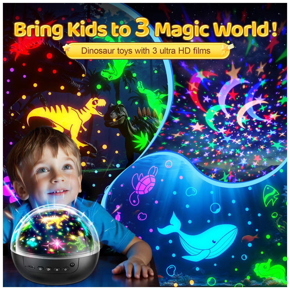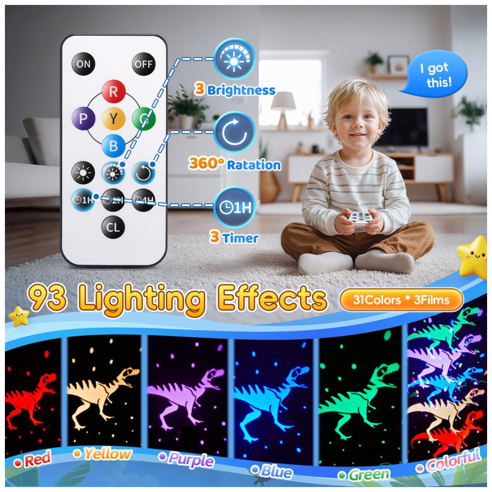 Brinquedo de Dinossauro para Crianças: 7 em 1 com 35 Estrelas Projeção de 3 Filmes e 93 Efeitos Controle Remoto TemporizadorStaryou