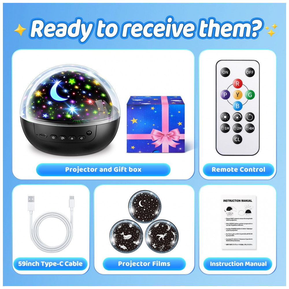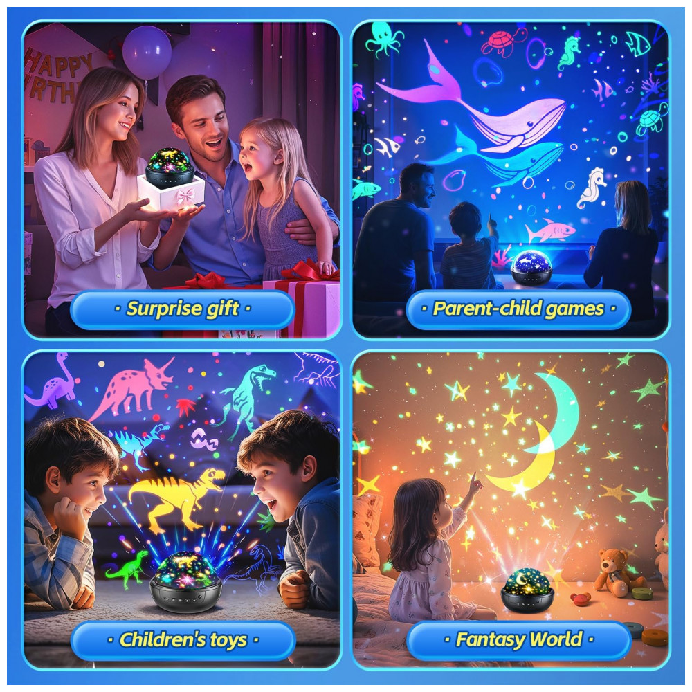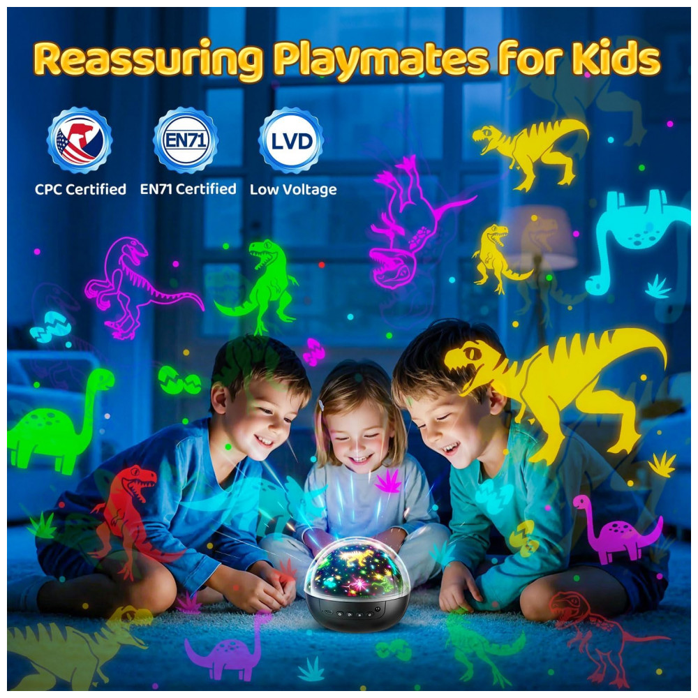 O Brinquedo de Dinossauro para Crianças da marca Staryou é uma escolha indispensável, com projeção de 3 filmes, 93 efeitos, controle remoto, temporizador e 3 níveis de luminosidade. Quando combinado com os filmes de dinossauro, ele se transforma em 3 incríveis brinquedos em 1! Com 5 cores e 31 efeitos fascinantes, este brinquedo garantirá horas de diversão. Além disso, possui rotação silenciosa de 360 graus, proporcionando um efeito universo giratório. Embalado em uma caixa requintada, este brinquedo é o presente perfeito para meninos de 3 anos!