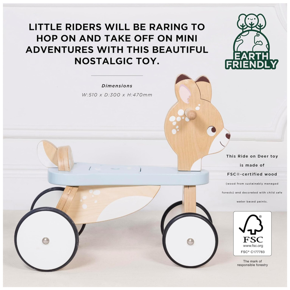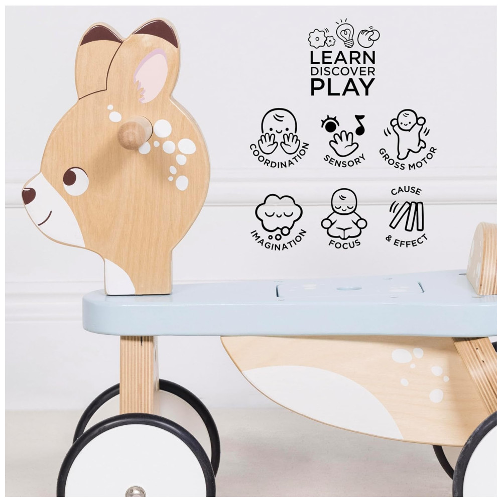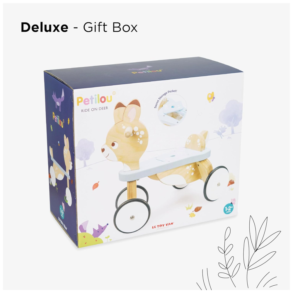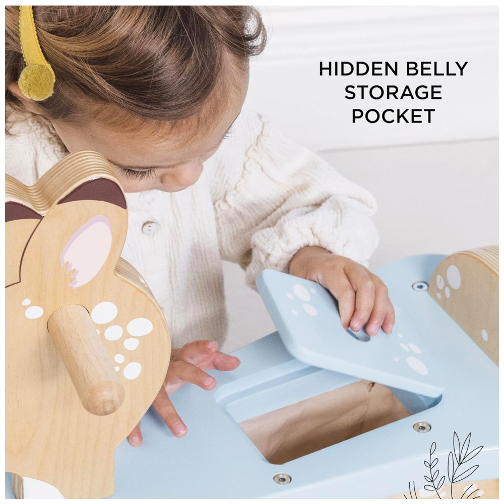 Este adorável andador em formato de cervo da exclusiva Coleção Petilou combina estrutura robusta de madeira com um bolso de armazenamento para que as crianças possam levar seus pequenos tesouros durante as aventuras.