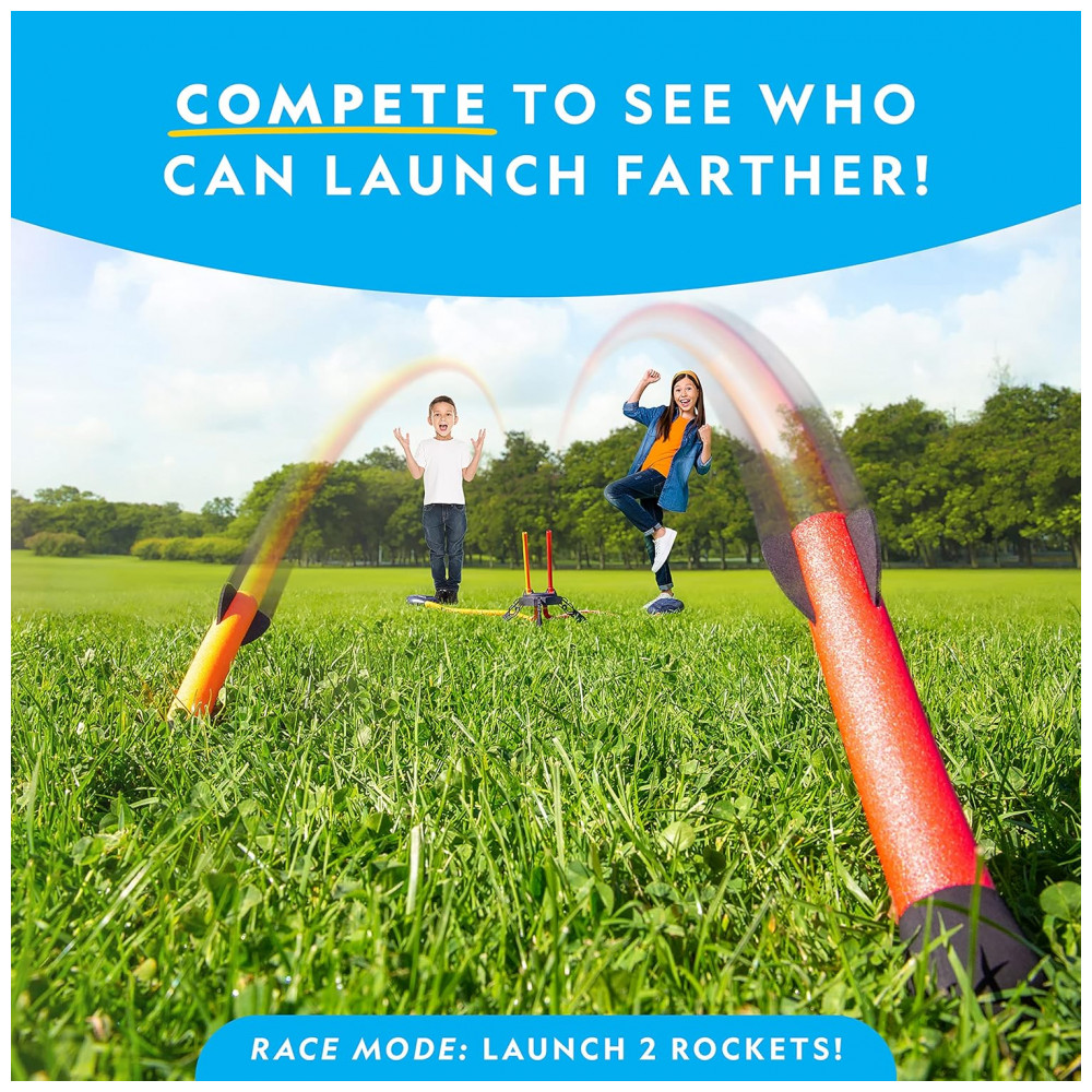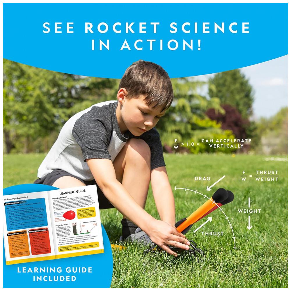 COMPITA OU JUNTE-SE PARA UM LANÇAMENTO MEGA! Com 2 bombas de ar e a plataforma de lançamento dupla com um sistema de válvula de ar patenteado, as crianças podem competir com dois foguetes ou trabalhar juntas para lançar um único foguete a incríveis alturas de até 30 metros! TUDO INCLUÍDO! Este kit de ciências de lançador de foguetes contém tudo que as crianças precisam para correr ou colaborar em seus lançamentos: 2 bombas de ar, plataforma de lançamento dupla e 4 foguetes de espuma. É uma adição incrível para sua coleção de jogos e brinquedos ao ar livre! SAIA E BRINQUE! Os foguetes aéreos para crianças incentivam exercícios físicos, exploração científica, desenvolvimento de habilidades motoras finas e equilíbrio. Um tubo de lançamento ajustável lança foguetes em diferentes ângulos, e o lançamento por pulo torna cada voo alimentado pela criança! APRENDER FAZ PARTE DA DIVERSÃO! Este kit vai além de um simples lançador de foguetes para crianças, pois nosso Guia de Aprendizagem detalhado contém experimentos de voo de foguetes e insights sobre a física do movimento e aerodinâmica. É um ótimo presente STEM para meninos e meninas! PRODUTOS PRÉMIADOS! A Blue Marble, vencedora do prestigiado prêmio Brinquedo do Ano da Toy Association, desenvolve orgulhosamente produtos que promovem educação, imaginação e criatividade.