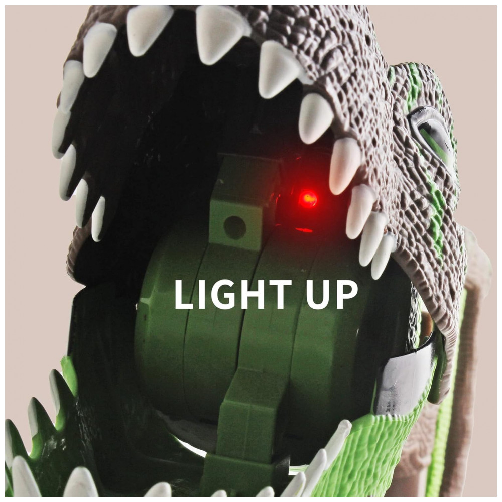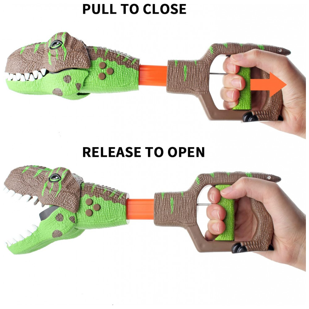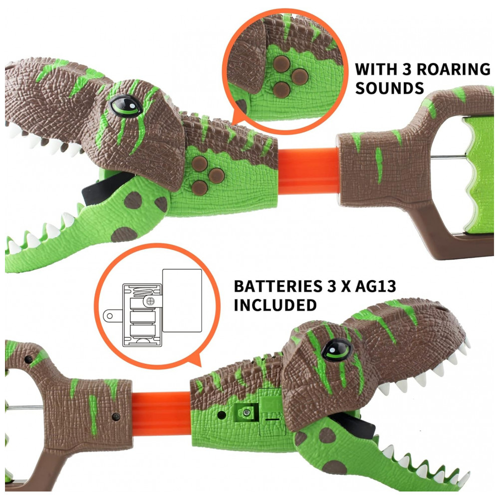 EFEITOS DE LUZ E SOM Um garra agarradora de dinossauro de 34,5 centímetros com luz e sons. Puxe a alavanca deste brinquedo TRex e a boca se fecha, pressione os 3 botões de som no corpo do dino para emitir 3 tipos de rugidos pré-históricos e se iluminar. DIVERTIDO DINOSSAURO CHOMPER Este realista brinquedo agarrador de dinossauro é uma maneira divertida para as crianças pegarem objetos. Um brinquedo de dinossauro com design legal que inspira imaginação e pensamento criativo, as crianças vão adorar brincar esse divertido jogo de aventura de dinossauro. BATERIAS INCLUSAS Cada brinquedo de pinça de dinossauro vem com 3 baterias AG13 substituíveis. Pronto para brincar quando as crianças receberem esse presente de dinossauro. DIVERSÃO DE DINOSAURO Um brinquedo chomper de dinossauro que pode ajudar as crianças a agarrarem objetos. Com a luz piscando e os 3 sons de dinossauro, as crianças podem brincar com outros itens de dinossauro para construir um mundo fantástico de dinossauros. ÓTIMA IDEIA DE PRESENTE Recomendado brinquedo de dinossauro para meninos e meninas a partir de 5 anos. Brinquedo de dinossauro com som é um ótimo favor de festa ou prêmio. Decoração empolgante para festas, presente de aniversário, lembrancinhas, presente de Natal.