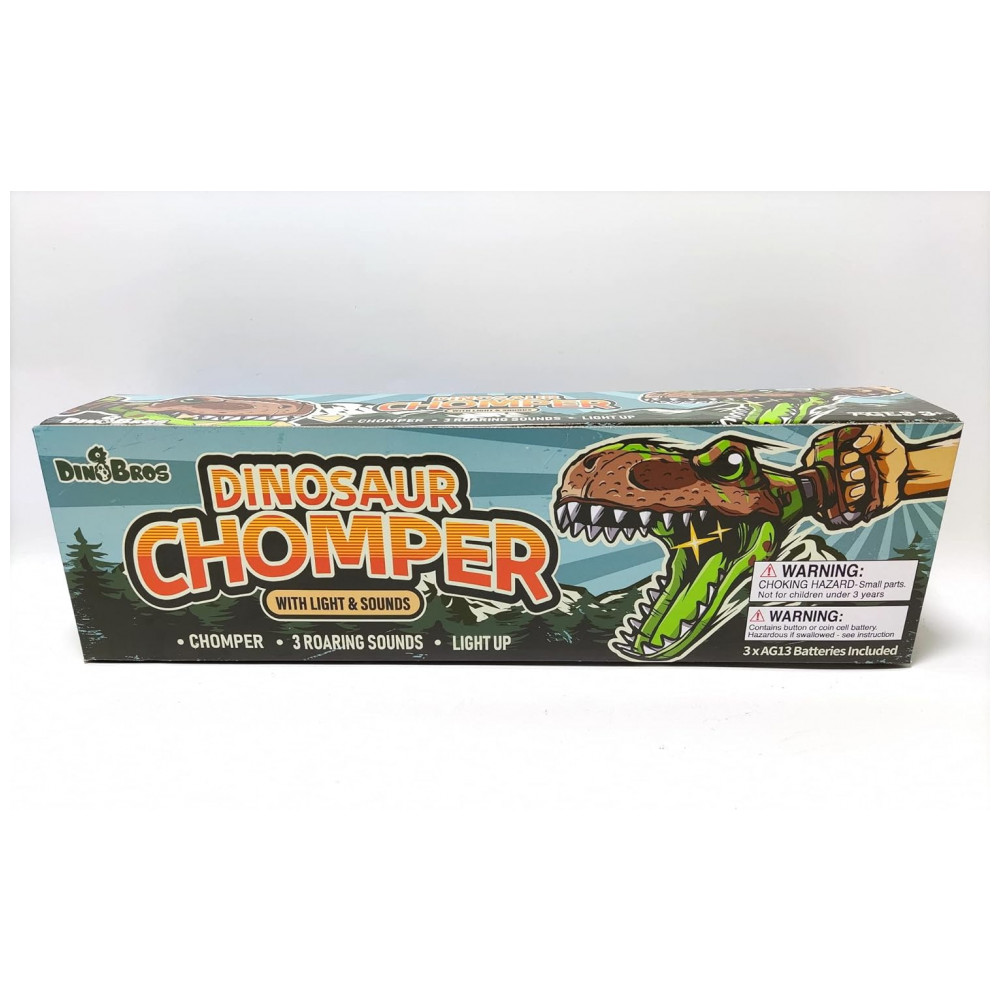 Brinquedo DINOBROS Dinossauro Chomper para Crianças com 3 Sons de Rugido e Luz Garra Agarradora de Dinossauros Jurássicos Braço Robô TRex
