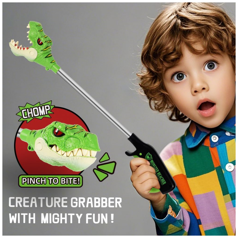 Design Realista de Dinossauro. Este brinquedo de dinossauro apresenta uma cabeça detalhada de TRex com texturas realistas e cores vibrantes, capturando a imaginação de todo amante de dinossauros. Diversão Interativa. Aperte a alça ergonômica para abrir e fechar a boca do dinossauro, perfeito para pegar pequenos brinquedos, animais de pelúcia ou doces, enquanto aprimora a coordenação motora e habilidades manuais das crianças. Tamanho de 41 cm. Tamanho ideal para crianças segurarem e usarem confortavelmente. Construção leve, porém resistente, facilita o transporte para qualquer lugar, perfeito para brincadeiras internas, aventuras ao ar livre e diversão em viagens. Estimula a Criatividade e Imaginação. Esta garra de mão de robô inspira inúmeros cenários de jogo, com o TRex Snapper permitindo às crianças criar suas próprias aventuras de dinossauros jurássicos, promovendo o brincar imaginativo. Ótimo Presente de Dinossauro para Crianças. Perfeito como presente de aniversário, presente de Natal, lembrancinha ou brinde de festa para crianças que adoram dinossauros. Este brinquedo temático de dinossauros garante horas de diversão para meninos e meninas a partir de 3 anos.
