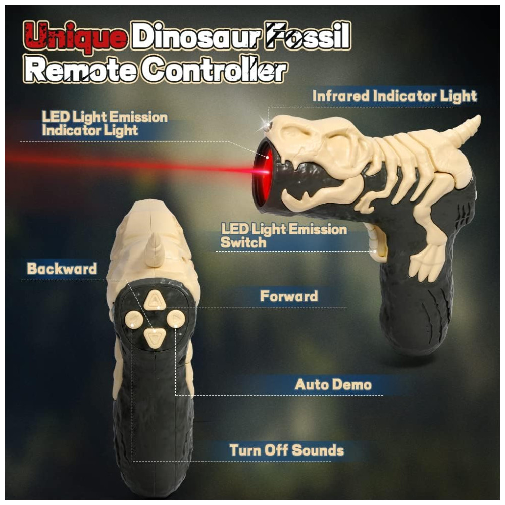 Além disso, pressionando o botão Auto DEMO, o dinossauro robô executará um conjunto de ações para as crianças, como andar automaticamente, abanar o rabo, borrifar água e rugir. As luzes LED de água em spray e o rugido realista tornam a experiência ainda mais emocionante.