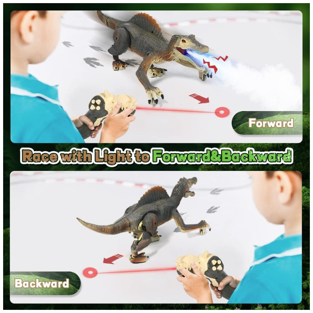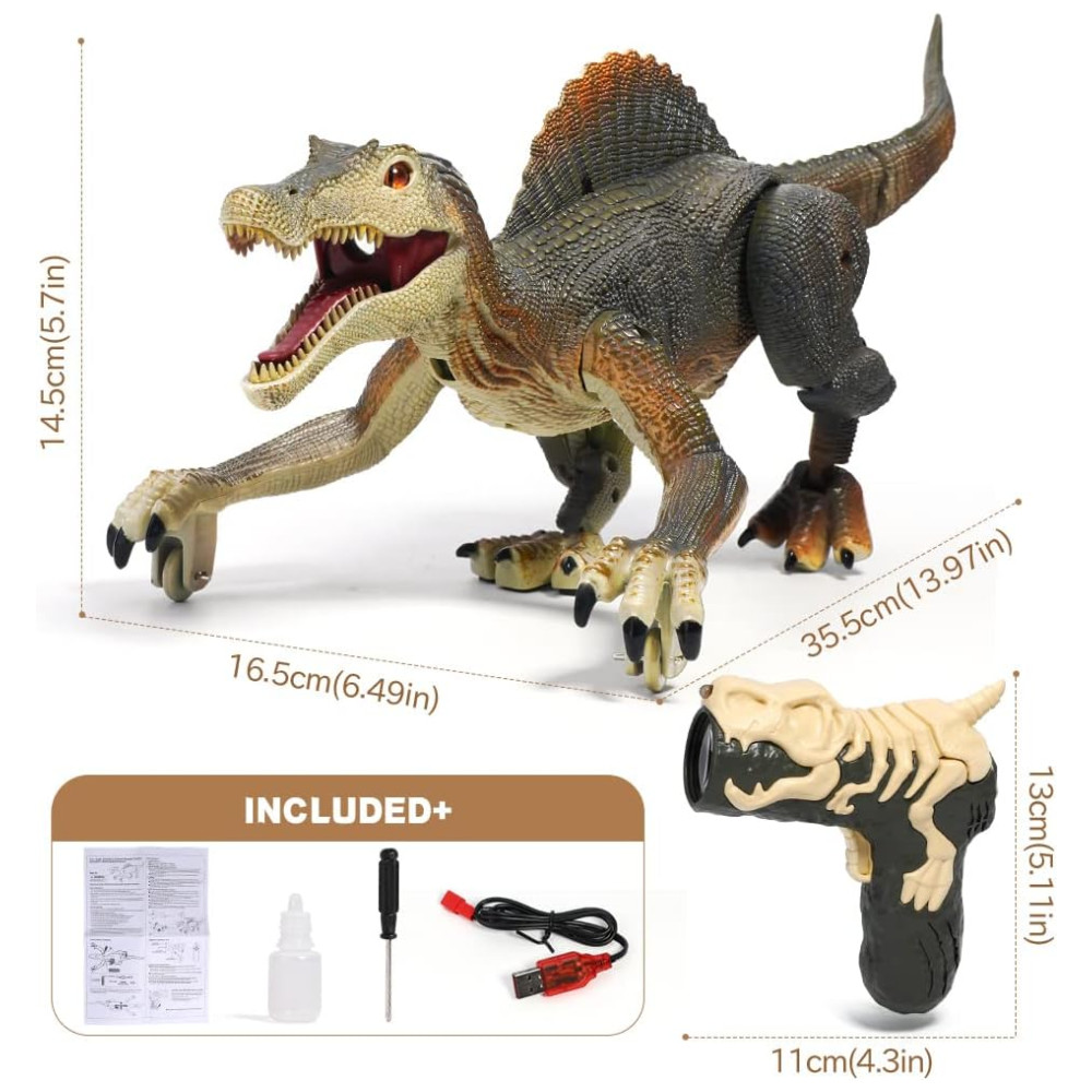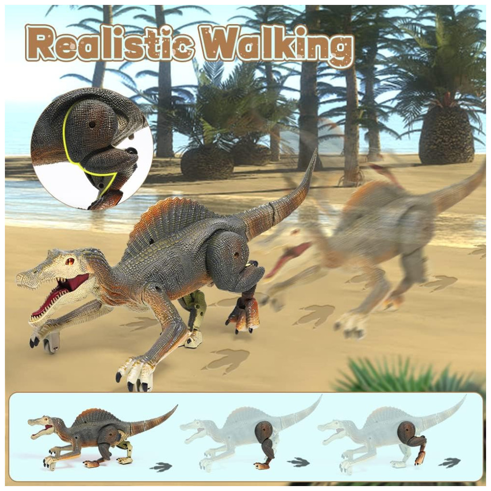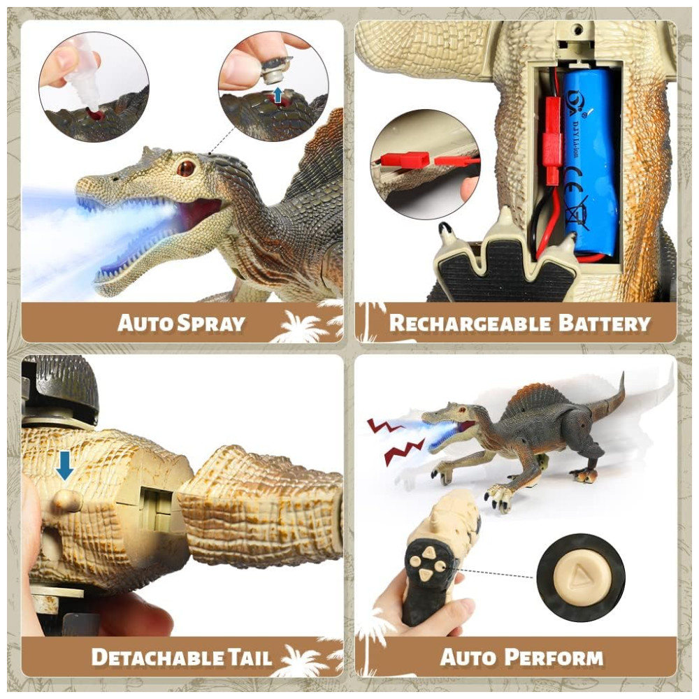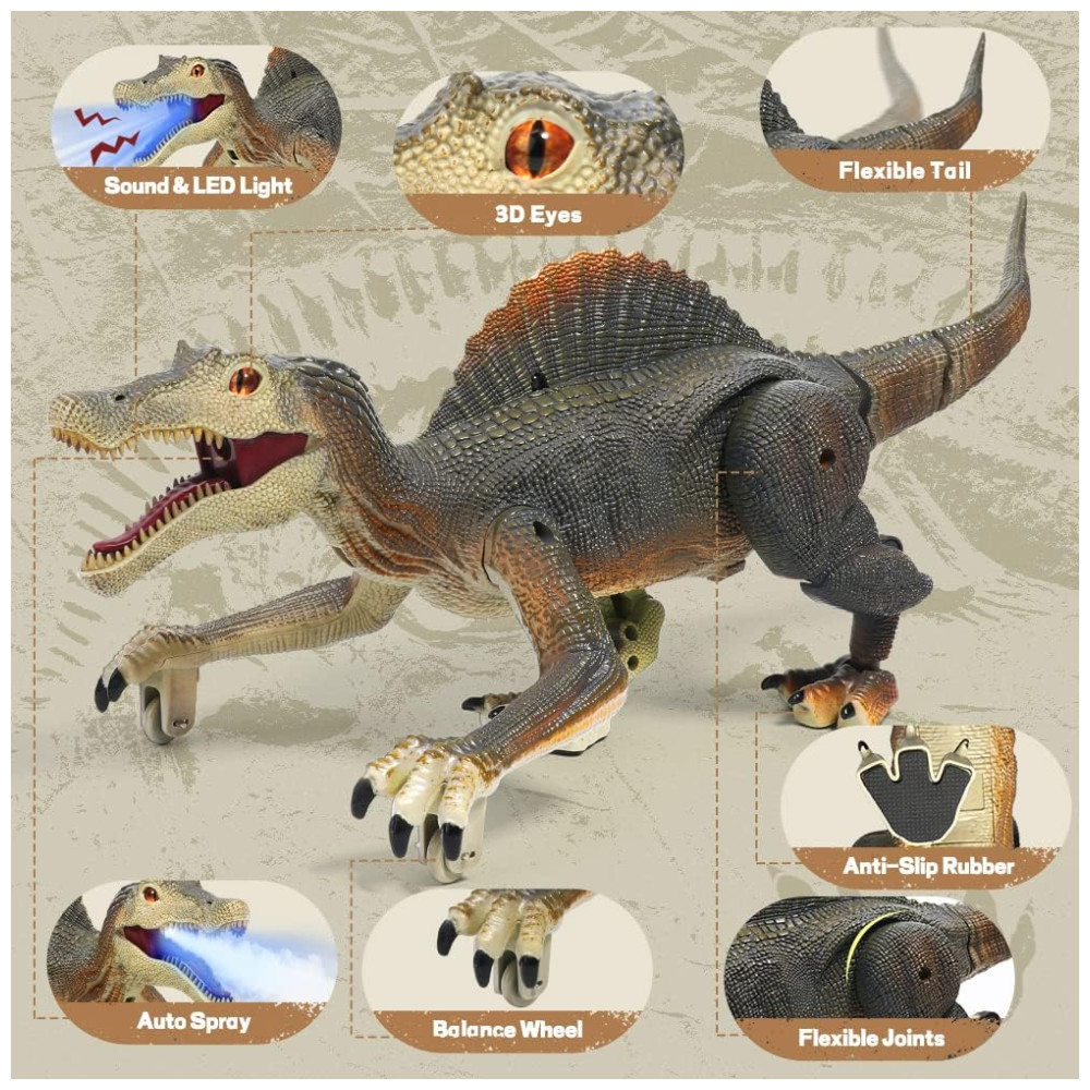 Brinquedo Dinossauro Spinosaurus que Anda e Rugi de Controle Remoto com Névoa de Spray Luz e Balança a Cabeça para Crianças Acima de 3 Anos FRUSE