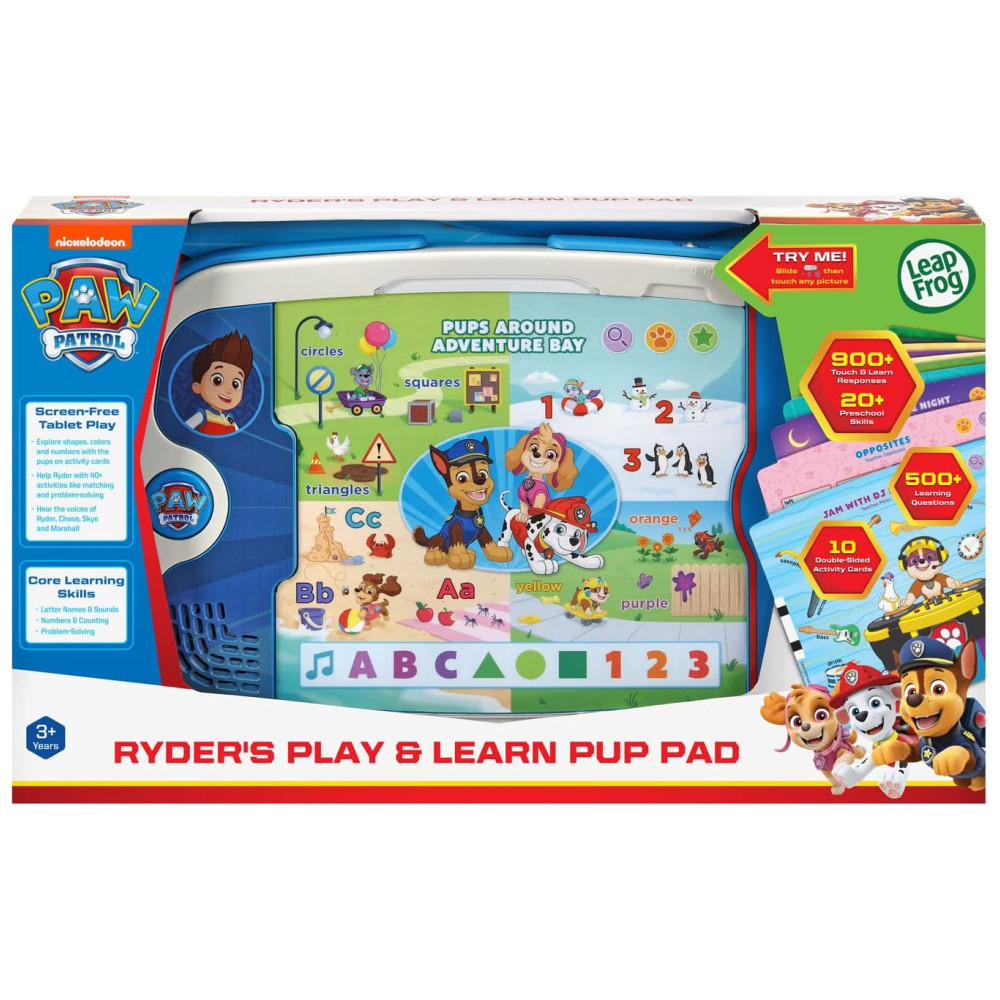 O PAW Patrol Ryders Play and Learn Pup Pad é um tablet sem tela que se parece com o Ryders Pup Pad e é indicado para crianças maiores de 3 anos. Com ele, você pode ajudar Ryder a liderar a equipe da Patrulha Canina em inúmeras atividades, como combinar e resolver problemas em 10 cartas duplas com os personagens Chase, Marshall, Skye, Rocky, Zuma e muito mais.