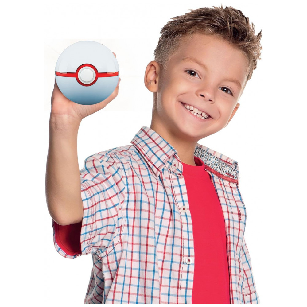 A Poké Bola possui formato compacto, com cerca de 9 cm de diâmetro, luzes internas e alto-falante integrado, sendo adequada para uso em ambientes internos ou externos. O brinquedo é alimentado por três pilhas AAA (inclusas) e foi projetado para crianças de 6 a 13 anos, oferecendo uma experiência lúdica que estimula memória, atenção e familiaridade com o universo Pokémon.