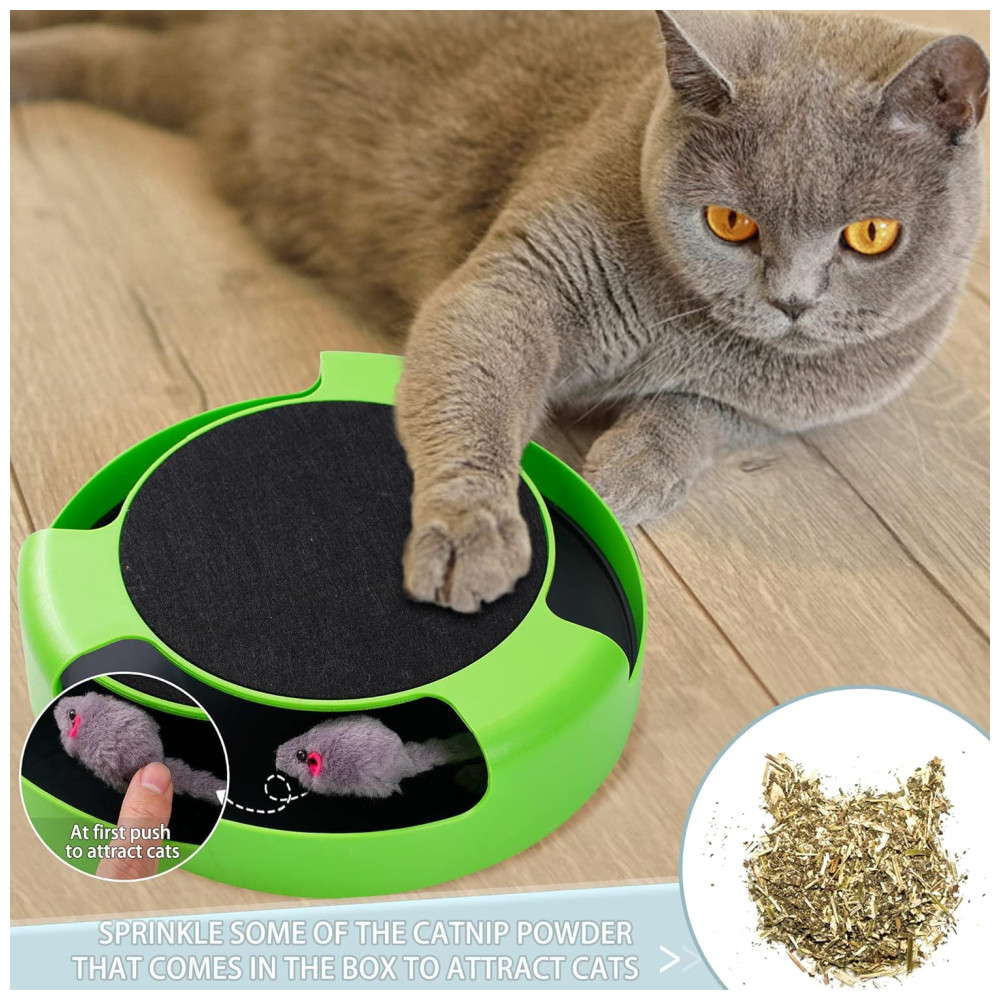 Função 2 em 1 Ótimos brinquedos interativos para gatos que não só podem brincar, mas também para cuidar da saúde e eliminar o tédio, a almofada de coçar superior pode manter as garras do seu gato saudáveis e também pode impedir que seus móveis sejam destruídos