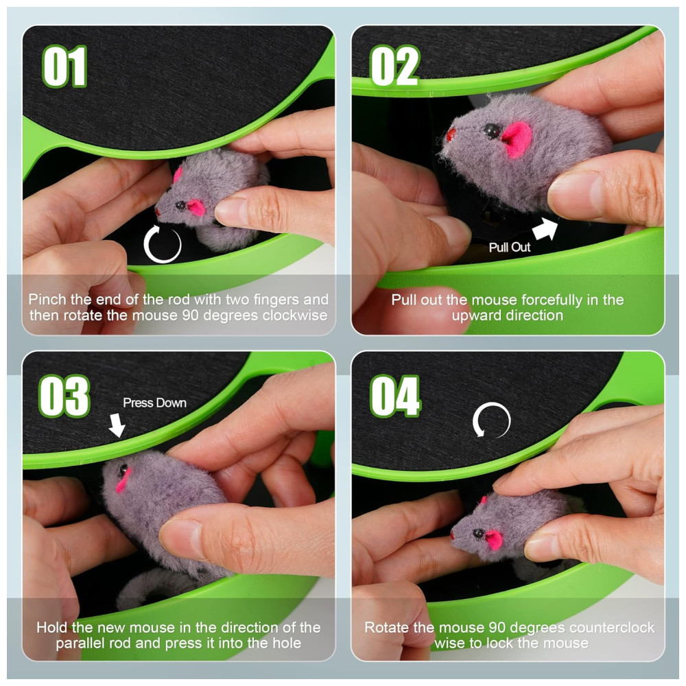 Produto Design exclusivo, aparência única, cores brilhantes, design de pele de rato simulado, uma vez que toque no mouse, ele girará na pista, é tão engraçado que seu gato vai pegá lo de e de , eu prometo que seu gato vai adorar