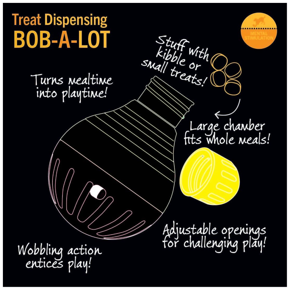As aberturas ajustáveis na parte superior e inferior acomodam a maioria dos tipos de comida de cachorro e permitem que você regule o nível de dificuldade