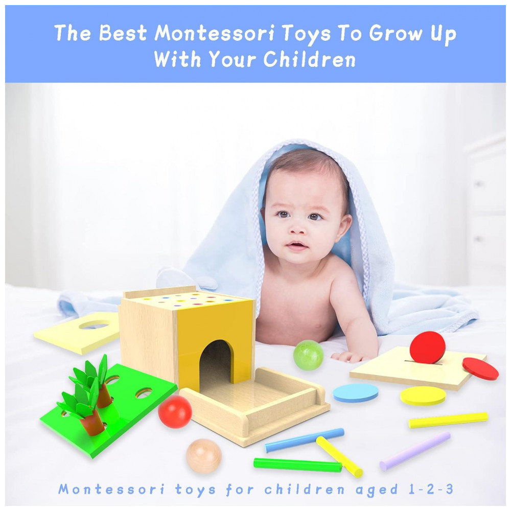 Brinquedo Montessori Caixa 5 em 1 com Atividades Sensoriais 6 a 24 Meses Adena Montessori