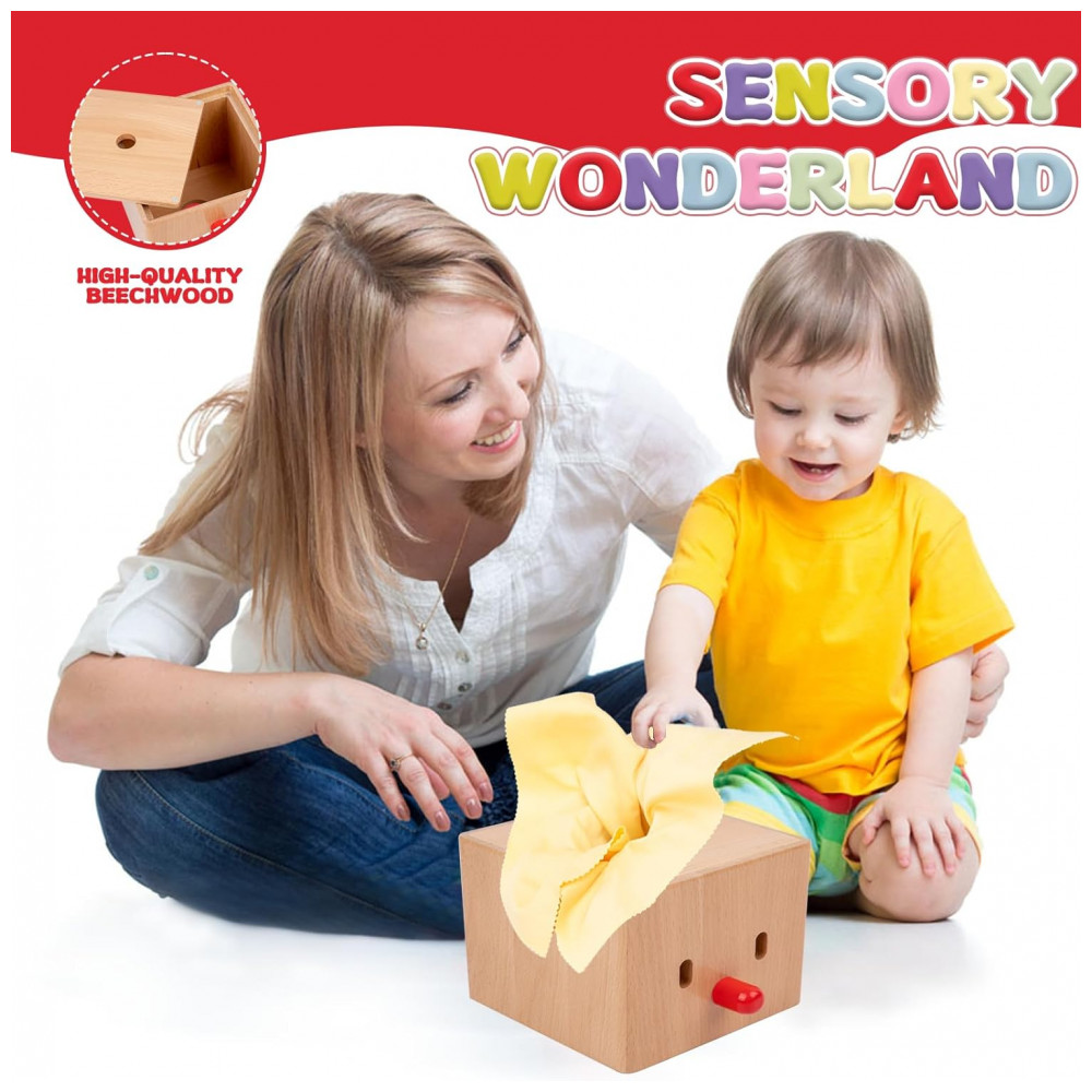 Brinquedo Montessori Caixa Sensorial com Tecido para Bebês d 6 a 12 Meses Adena Montessori