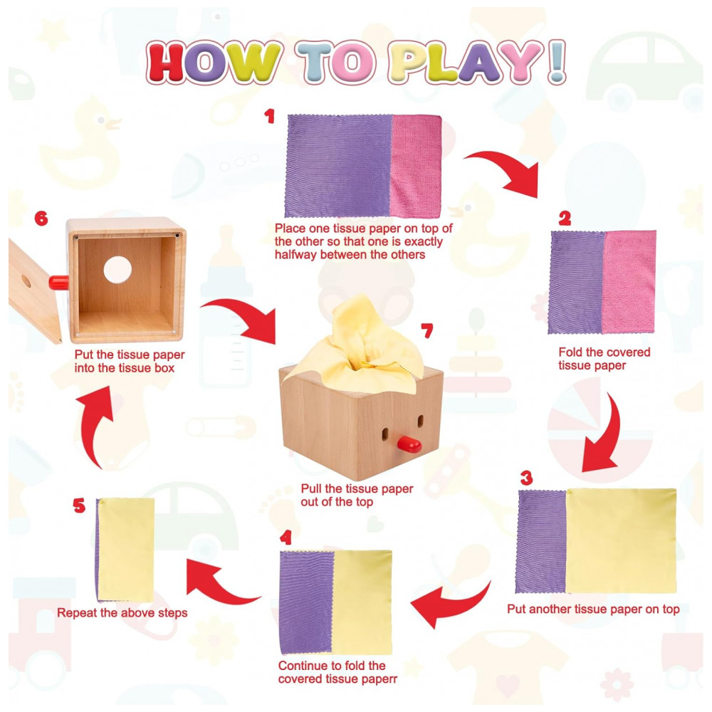 Aprendendo através da Play: Este brinquedo de caixa de tecido não é apenas uma alegria absoluta para o seu bebé, mas também incentiva o seu desenvolvimento cognitivo e sensorial. À medida que se envolvem com as várias texturas e cores, eles estarão aprendendo e crescendo a cada toque.