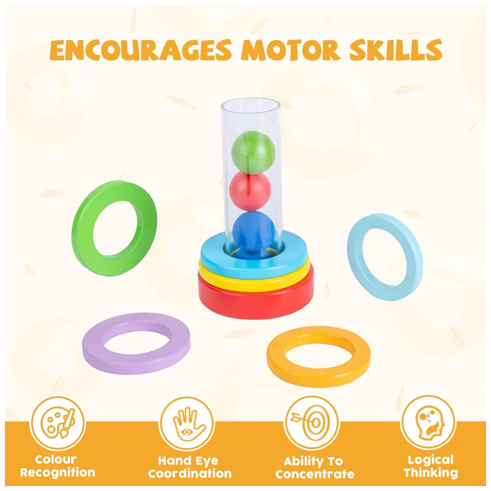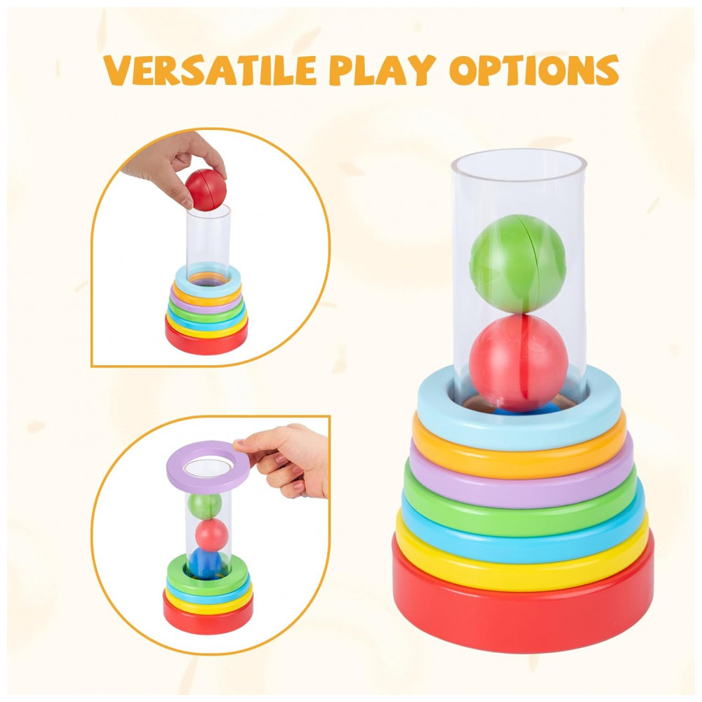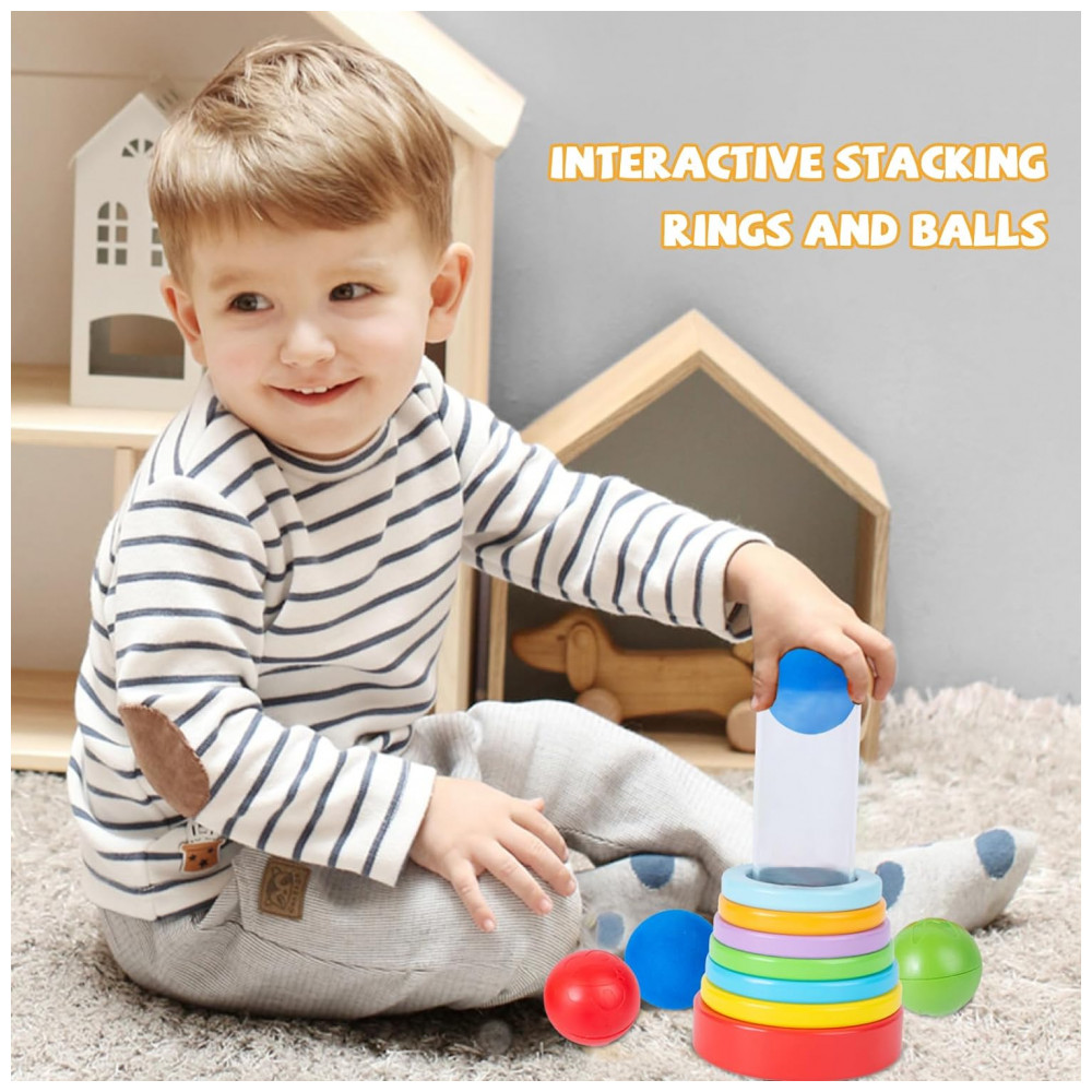 ção visual: As cores vibrantes dos anéis e bolas de empilhamento m os sentidos visuais do seu filho, tornando a brincadeira educativa e divertida. À medida que brincam, eles também aprendem sobre diferentes cores e tamanhos.