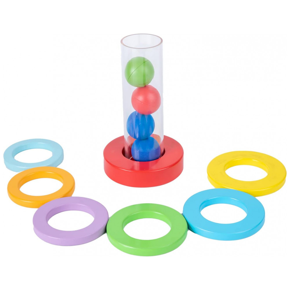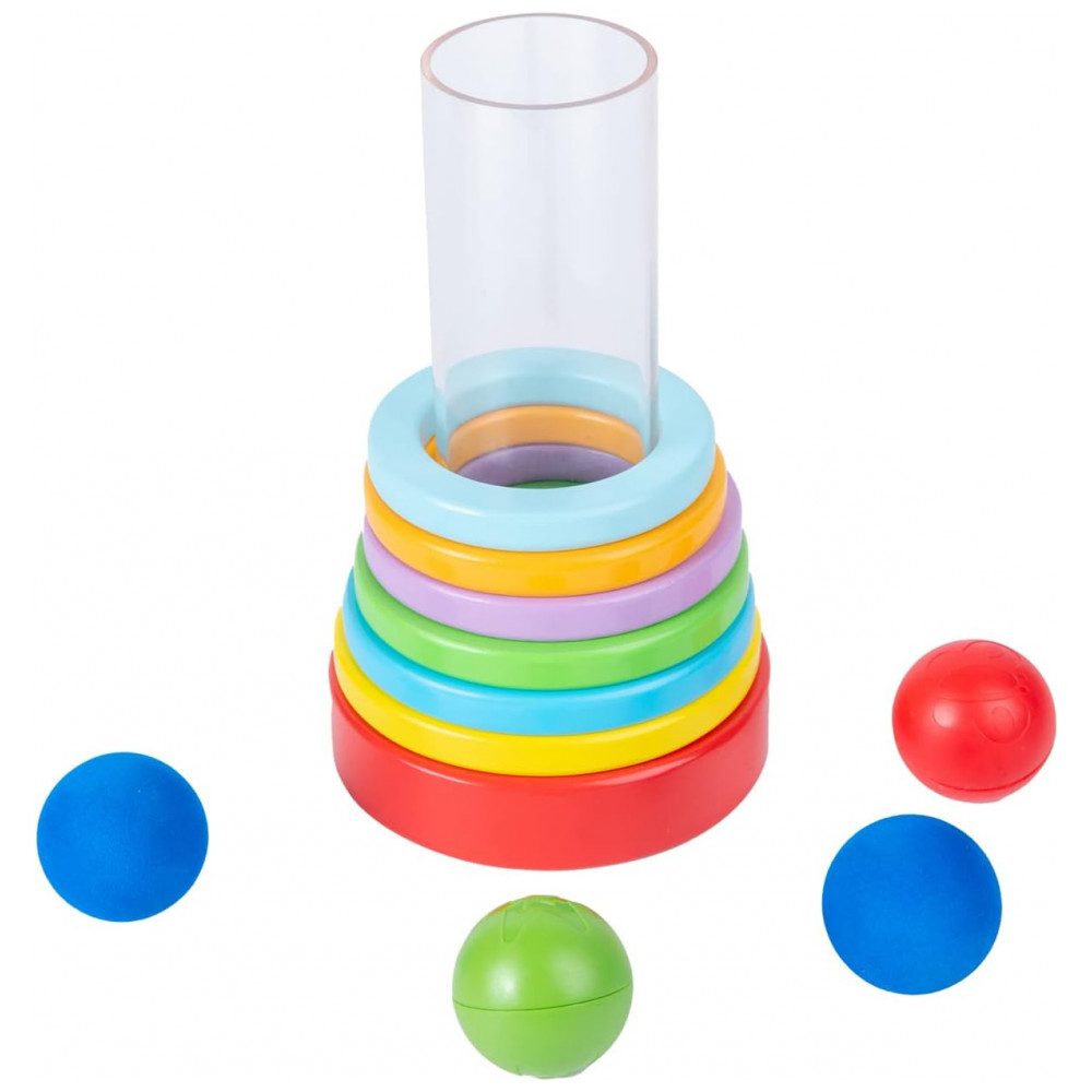 Incentiva habilidades motoras: Observe como seus pequenos desenvolvem suas habilidades motoras e coordenação olho mão enquanto eles se divertem empilhando os anéis coloridos na base do anel vermelho. O tubo transparente no centro permite que os bebês joguem e retirem as bolas, promovendo a curiosidade e a exploração.