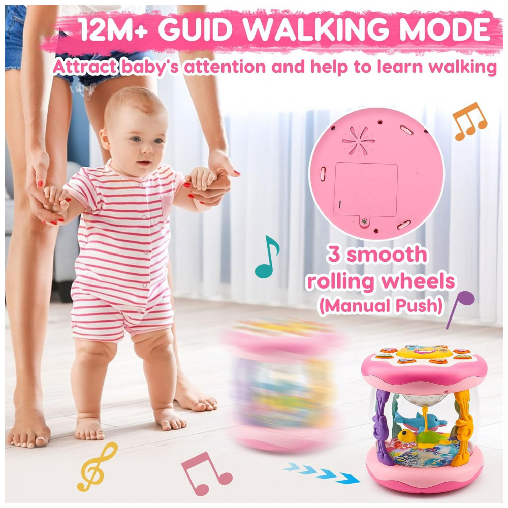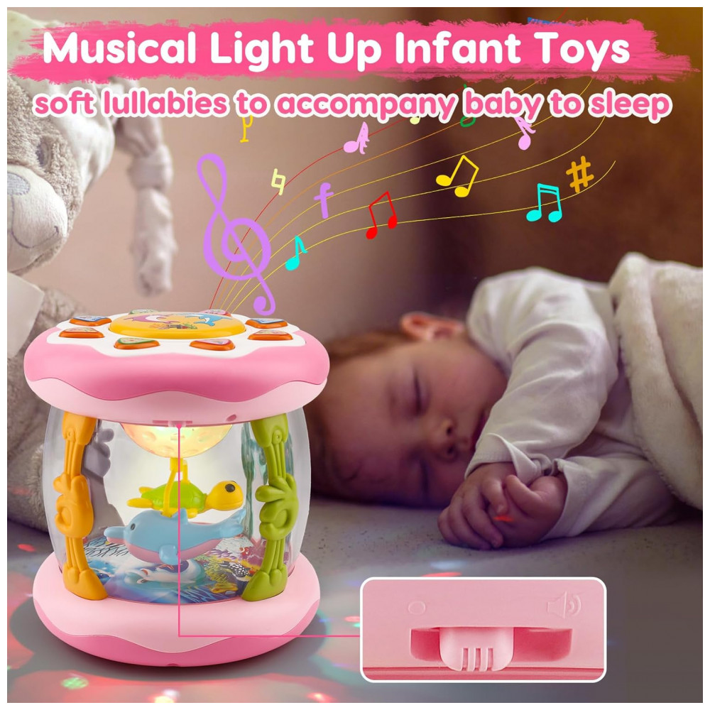 Brinquedo musical projetor oceano giratório Tsomtto rosa para bebês desenvolvimento sensorial luz e som