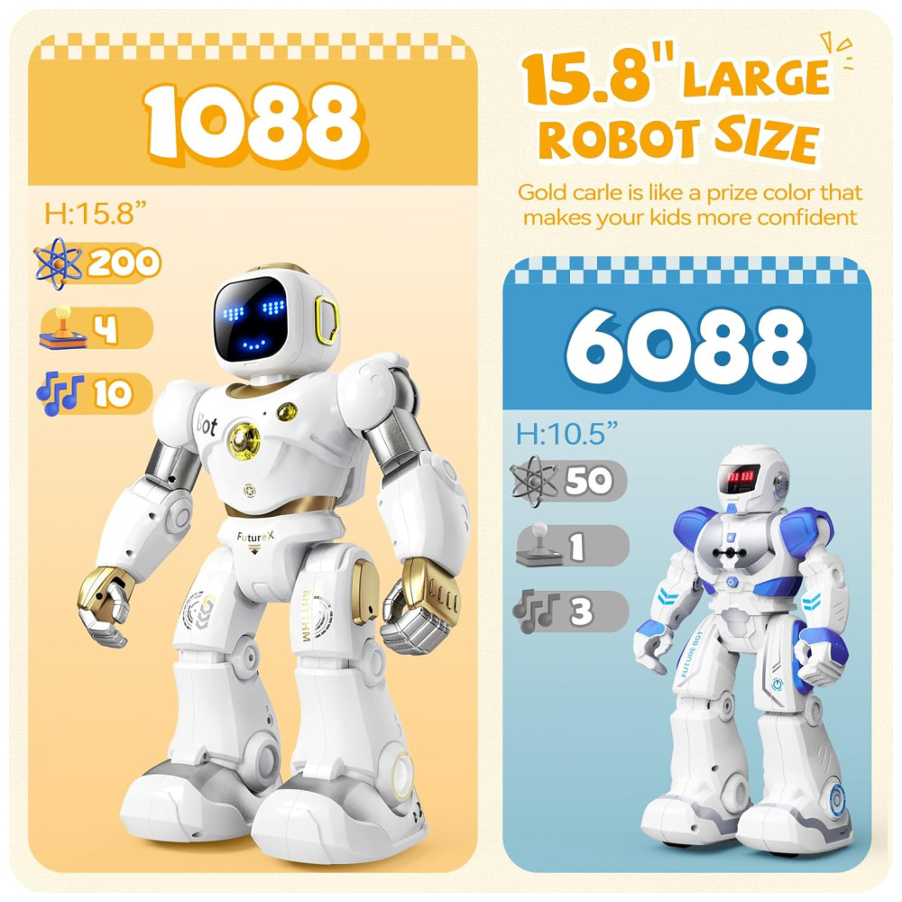 Grandes Robôs Deixam as Crianças Mais Animadas Robôs de brinquedo aprovados pela FCC, CPC, certificado ASTM são inofensivos O tamanho grande 15,8 x 11 x 4,7 polegadas, funções fortes e pacote luxuoso serão mais charmosos Carle é um ótimo robô para crianças e um presente incrível no aniversário, Natal com grande surpresa
