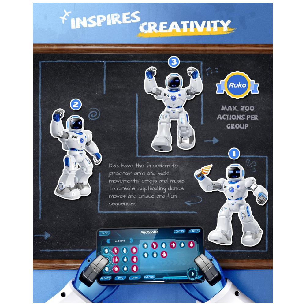 APP suporta 56 ações diferentes no total e edições máx. 200 vezes de ações em um programa, isso desenvolve muito a capacidade criativa, paciência, concentração e capacidade de senso lógico das crianças