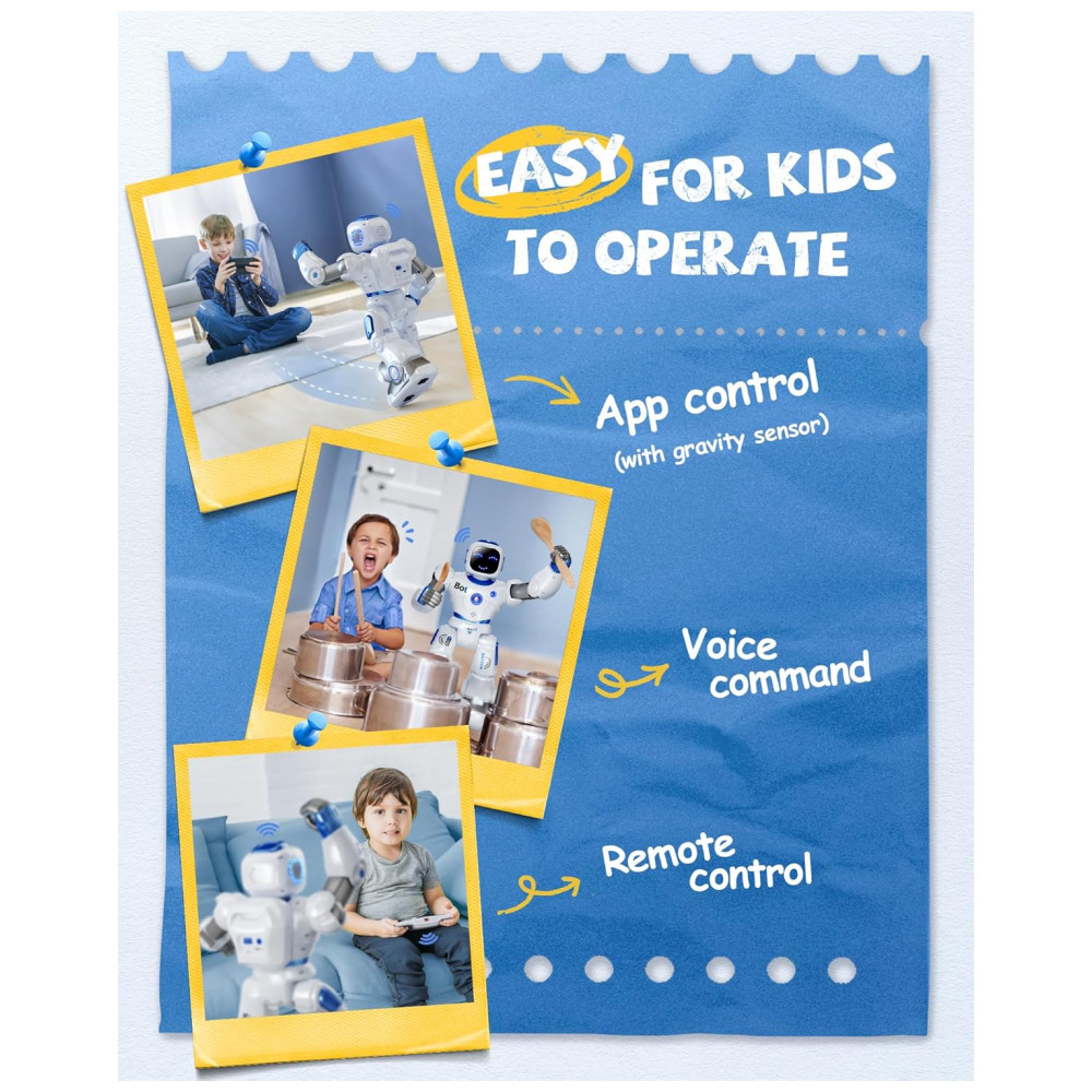 O robô inteligente chamado Carle pode ser controlado pelo aplicativo de telefone, controlador remoto, comando de voz e sensor de gravidade facilmente, as crianças podem ter mais diversão por seus níveis de idade, mais fáceis de operar em seus favoritos, de fato um amistoso companheiro.