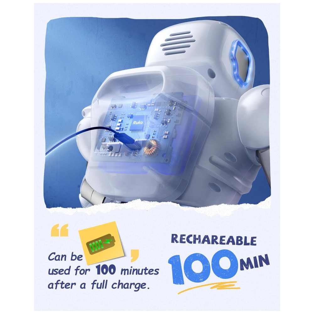 Brinquedo Robô Educativo Inteligente Eletrônico e Recarregável para Crianças 3 Anos ou Mais RUKO Ru4413 Branco