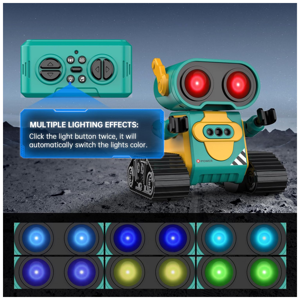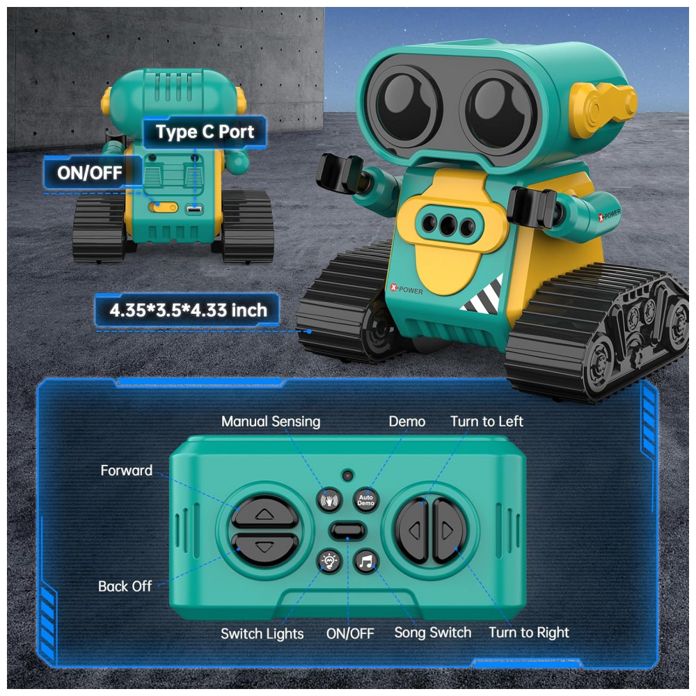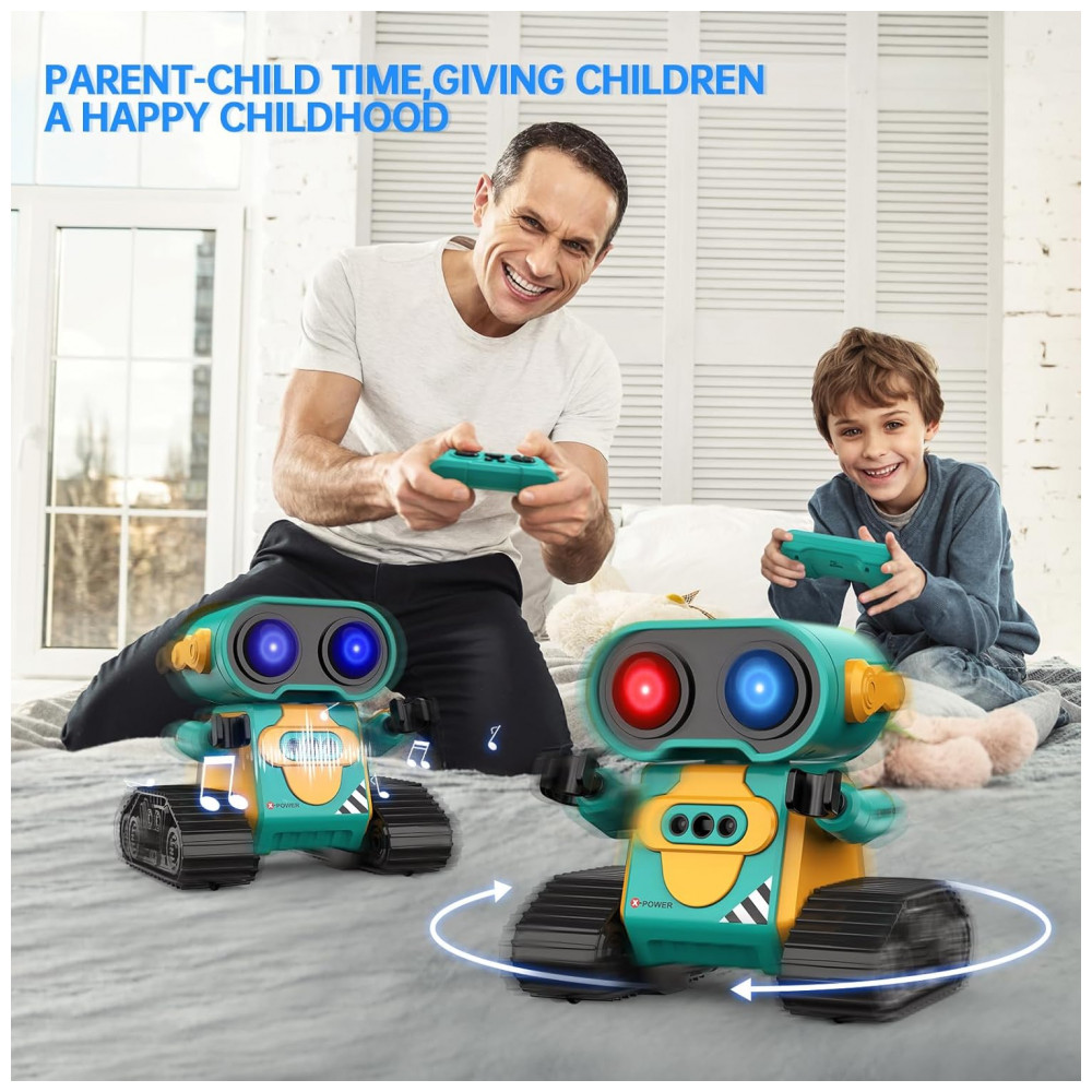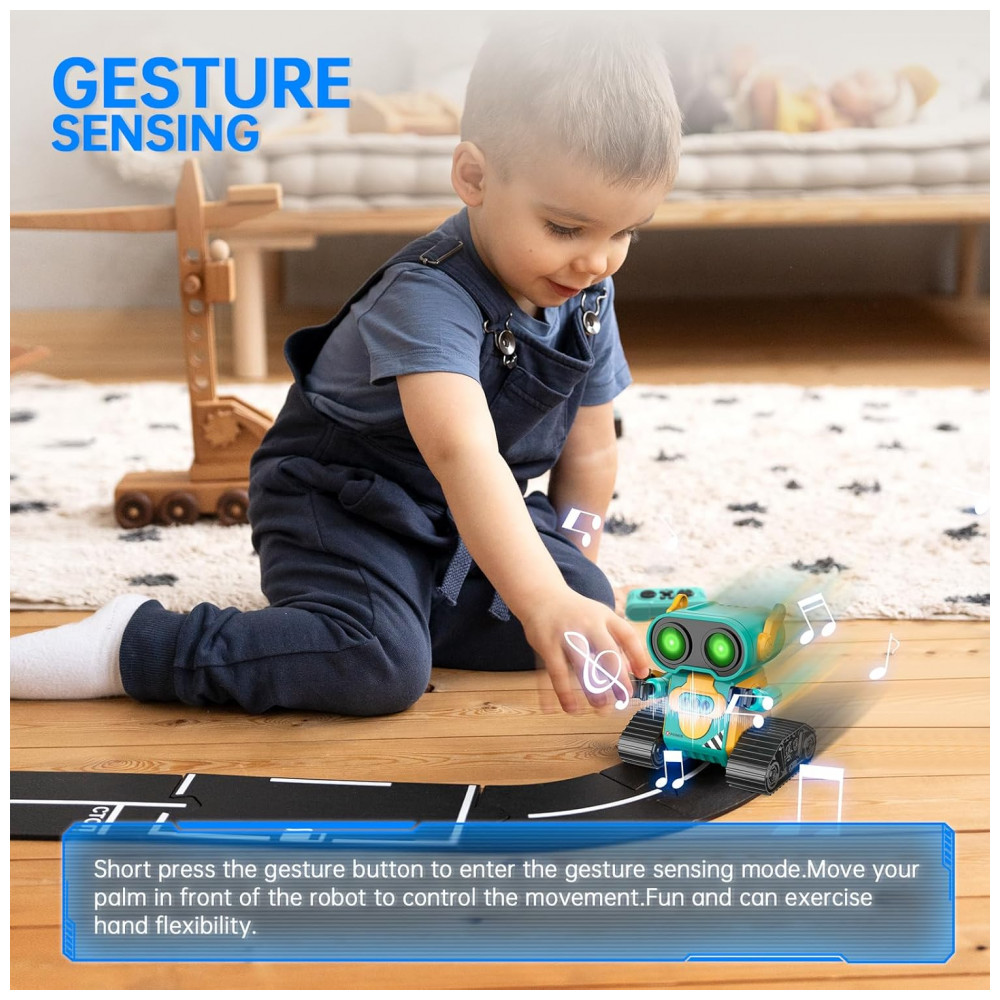 O Robô Multifuncional é uma incrível opção de entretenimento! Seus olhos grandes e engraçados se acendem assim que você liga o robô, proporcionando uma aparência adorável, principalmente à noite. Este robô é capaz de cantar diferentes músicas com um botão musical. No modo de demonstração, ele fará giros de 360 graus, dançando com braços flexíveis. Além disso, possui vários modos de luz nos olhos que mudam automaticamente, tornando-o muito fofo. Com um design único e divertido, este robô possui uma aparência encantadora, com grandes olhos engraçados e braços flexíveis. Você até pode colocar algo em suas mãos para deixá-lo ainda mais legal! As rodas grandes e duráveis permitem que o robô se mova para frente, para trás, para a esquerda e para a direita com facilidade. As canções vão encantar seu bebê. Combinando uma aparência fofa, belos olhos grandes, membros flexíveis e uma função de voz inteligente, seu bebê vai adorar este robô. O Sensor de Gestos permite uma interação divertida! Ao pressionar o botão de gestos no controle, o robô entra no modo de sensor de gestos. Coloque a mão na frente do robô e mova-a, o robô irá se mover. Se você retirar a mão, o robô irá segui-la; se você mover a mão ao redor do robô, ele irá girar junto. Muito interessante! Essa funcionalidade vai despertar bastante o interesse das crianças. Fácil de operar, com controle remoto de 2,4GHz, as crianças podem controlar facilmente o robô para se mover e dançar. O robô ainda emite sons engraçados de vez em quando para fazer as crianças rirem. É possível pressionar o botão do olho LED por mais tempo para alternar automaticamente entre os modos de luz nos olhos. Ideal para crianças de 3 anos ou mais, este Robô Hamourd é um presente perfeito para aniversários, Natal ou festivais. Mais do que apenas diversão, este brinquedo é educativo e uma opção melhor do que um robô-cachorro. Além disso, a embalagem é exquisita e inclui: 1 robô controlado por controle remoto, 1 controle remoto, 1 chave de fenda, 1 manual do usuário e pilhas para o controle.
