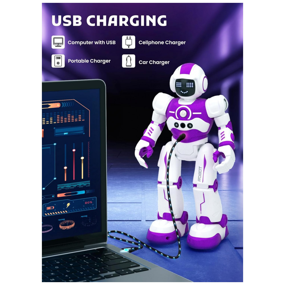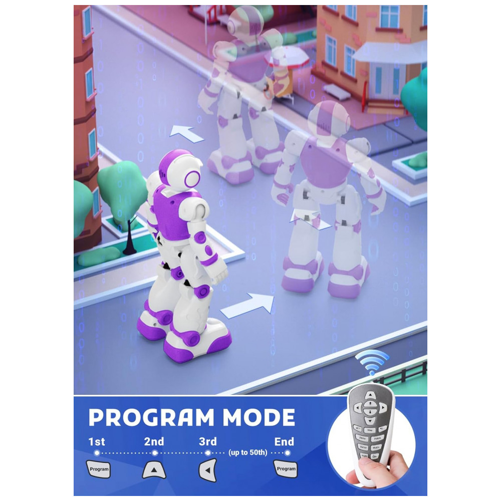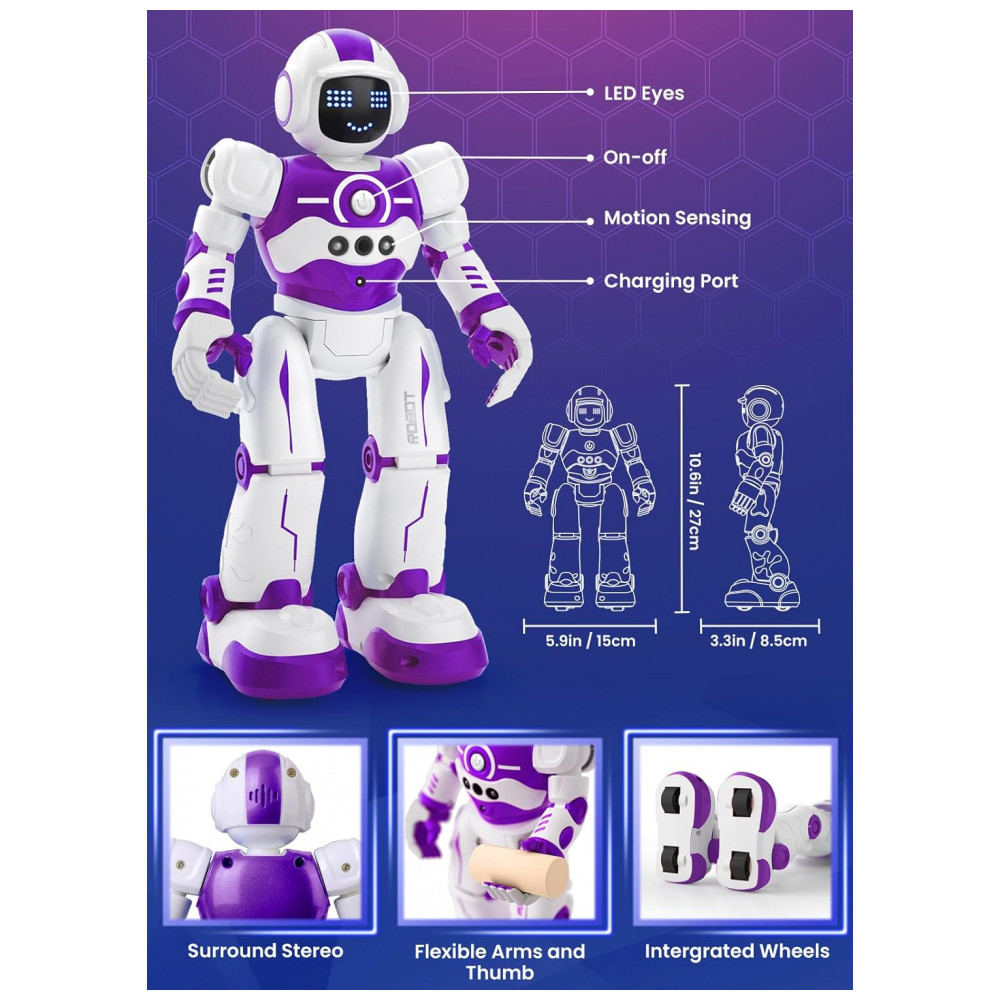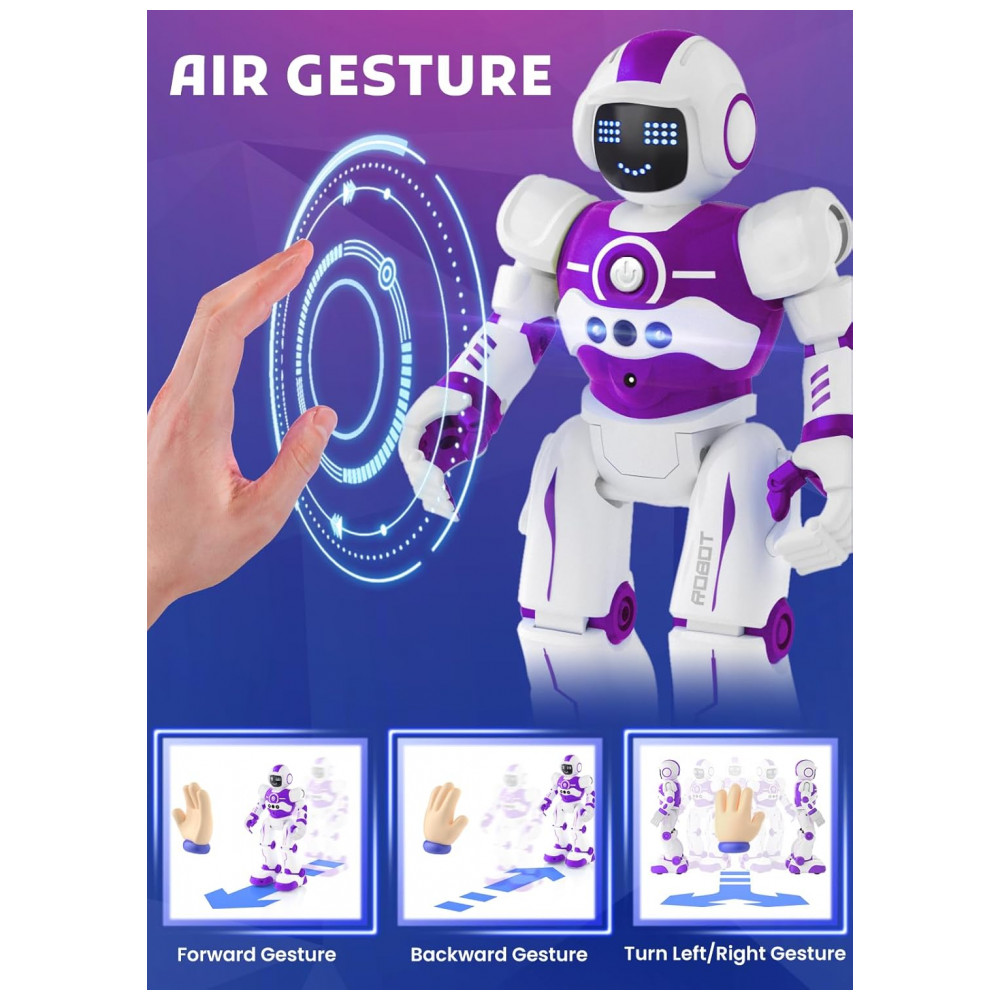 Controle Remoto e Controle por Gestos: Este robô com sensor de gestos pode ser controlado tanto pelo controle infravermelho quanto pelos gestos da mão. Além de virar para a esquerda, virar para a direita, deslizar para trás e para frente conforme os comandos de gestos. Possui funções como exibição automática e evasão de obstáculos. Os olhos do robô se iluminam com LED azul brilhante quando está em movimento. Programação Inteligente: Este brinquedo inteligente pode executar até 50 ações programadas pelo usuário. Se você ativar a função de programação, o robô repetirá os movimentos um por um, como virar para a esquerda, virar para a direita, andar para a frente, andar para trás, patrulhar, dançar, entre outros modos de ação selecionados. Material Premium: Feito de plástico ABS atóxico, com articulações flexíveis nos ombros, cotovelos e dedos, e rodas de patins resistentes na base para executar várias combinações de movimentos. Este robô divertido entretém as crianças e proporciona muita alegria. Recarregável e Prático: Este robô é alimentado por baterias recarregáveis internas. Basta conectá-lo a uma interface de carregamento USB, como banco de energia, computador, entre outros. A recarga economiza dinheiro com pilhas e dura cerca de 2 horas, com tempo de reprodução de aproximadamente 60 minutos. Presente Ideal para Aniversário e Natal: O Robô de Controle Infravermelho é versátil, podendo dançar, cantar, andar, patrulhar e até falar. Cada robô mede 15 x 8,4 x 27 cm.