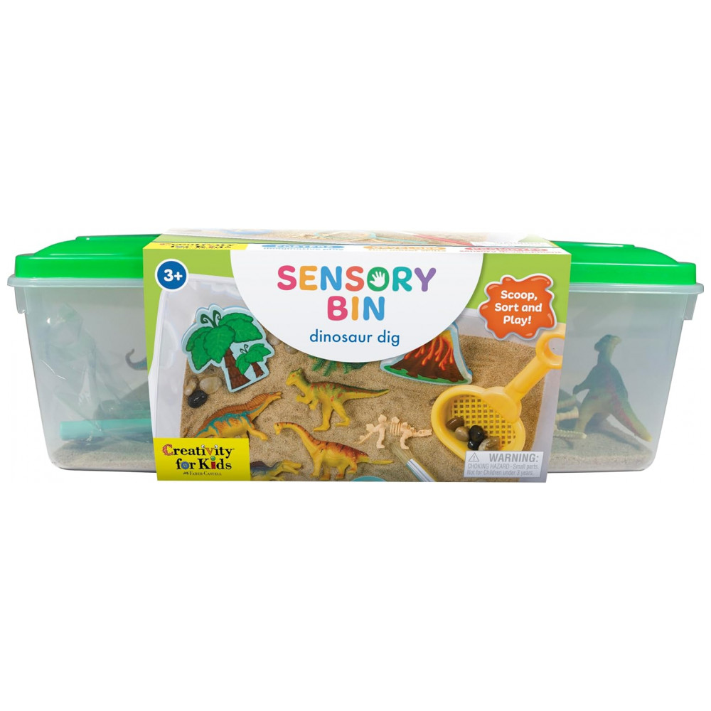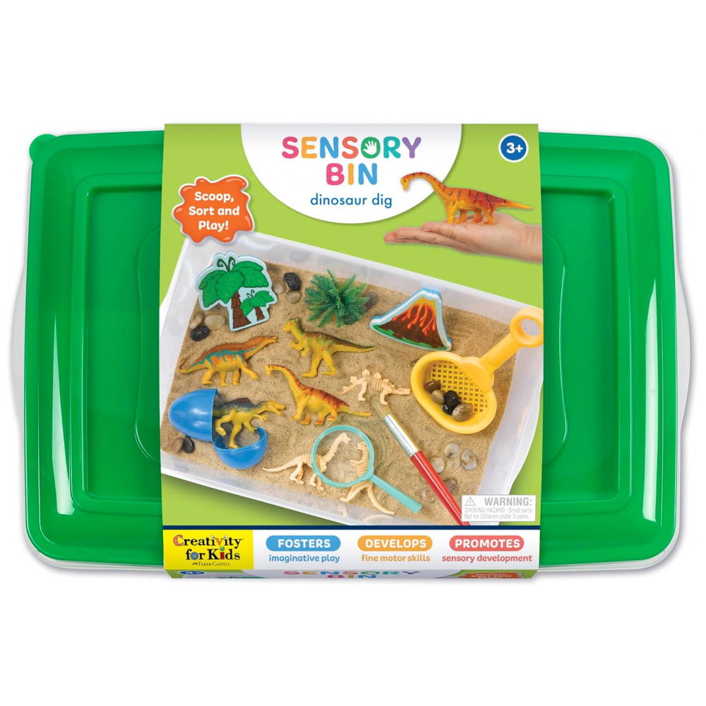 DESCRIÇÃO DO PRODUTO: Crie o seu mundo de dinossauros e descubra fósseis com o Brinquedo Sensorial de Escavação de Dinossauros da Creative Kids. Esta experiência sensorial é perfeita para meninos e meninas que adoram trabalhar com as mãos. Futuros paleontólogos poderão criar uma terra de dinossauros cheia de plantas e pedras, esconder e descobrir fósseis na areia. A brincadeira sem fim torna esta uma ótima atividade interna e externa para crianças, basta adicionar imaginação! Os bins sensoriais permitem que as crianças descubram, imaginem e aprendam enquanto envolvem seus sentidos e se divertem! Escavar, classificar e explorar neste bin sensorial autocontido. Brinquedos sensoriais pré-escolares oferecem muitos benefícios de aprendizado para as crianças desenvolverem habilidades motoras finas, promoverem o desenvolvimento sensorial e incentivar o jogo imaginativo. Todos os enchimentos do bin sensorial são cuidadosamente selecionados e testados quanto à segurança para proporcionar a melhor experiência de jogo em casa. O conjunto completo inclui 3 lbs de areia para brincar, brinquedos de dinossauro para crianças de 3 a 5 anos, planta artificial, pedras, peneira de areia, fósseis de dinossauro, pincel para fósseis, vulcão artificial e árvore, e lupa, tudo convenientemente embalado em um bin com tampa para fácil armazenamento. Os bins sensoriais são ótimos presentes para meninos e meninas de 3 anos, presentes de aniversário, bem como presentes para crianças! A atividade de aprendizado pré-escolar é fácil de limpar. Basta colocar o bin e brinquedos sensoriais para crianças em uma toalha de mesa. Quando terminar de brincar com o brinquedo para meninos e meninas de 3 a 4 anos, recicle o bin sensorial, plantando flores ou armazenando pequenos brinquedos e lembranças dentro, os artesãos também podem reciclar seu bin para fazer sua parte em salvar nosso planeta! Divirta-se enquanto constrói confiança criativa! Desde 1976, a Creative Kids tem orgulhosamente criado experiências divertidas e criativas para nutrir a confiança das crianças para a vida. O Kit Sensorial de Escavação de Fósseis de Dinossauros da Creative Kids é recomendado para idades de 3 a 5 ANOS. DA FABRICANTE: Escave, descubra e aprenda – um fóssil de cada vez! O Brinquedo Sensorial de Escavação de Dinossauros da Creative Kids é uma aventura prática perfeita para crianças de 3 a 5 anos que adoram explorar e brincar na terra. Com areia sensorial macia e brinquedos temáticos de dinossauros divertidos, pequenos paleontólogos podem descobrir fósseis, construir sua própria cena pré-histórica e despertar histórias imaginativas – tudo em um espaço de jogo contido. Projetado para meninos e meninas que gostam de diversão prática, este bin interativo apoia a aprendizagem pré-escolar por meio da exploração sensorial, desenvolvimento de habilidades motoras finas e jogo aberto. Seja usado para o tempo tranquilo independente ou diversão em grupo sem tela, este kit proporciona horas de descoberta tátil. O conjunto completo inclui 3 lbs de areia para brincar, mini brinquedos de dinossauro, um vulcão, lupa, pedras, árvore tropical de brinquedo, pincel para fósseis, peneira de areia e muito mais – além de um bin reutilizável e tampa que serve como superfície de jogo – o bin mede aproximadamente 36,8 cm de largura x 26 cm de comprimento x 12 cm de altura. Tudo é cuidadosamente embalado para fácil armazenamento e limpeza. Todos os materiais são não tóxicos e testados quanto à segurança para garantir uma experiência divertida e sem preocupações em casa. Basta colocar uma toalha embaixo do bin para uma brincadeira rápida e sem bagunça. Quando terminar, coloque a tampa para guardar seus suprimentos ou reutilize o bin para sua próxima aventura! Procurando um ótimo presente de aniversário para crianças de 4 anos ou uma atividade de aprendizado para crianças pequenas? Este bin sensorial de dinossauros é uma escolha perfeita! Desde 1976, a Creative Kids tem inspirado confiança por meio de brincadeiras criativas e práticas. ESCAVE A DESCOBERTA DE DINO: Desenterre surpresas pré-históricas com este bin sensorial prático. Perfeito para crianças curiosas que adoram escavar, pincelar e explorar. APRENDIZADO ATRAVÉS DA BRINCADEIRA: Projetado para crianças de 3 anos, esta atividade interativa incentiva o desenvolvimento de habilidades motoras finas, descoberta sensorial e contação de histórias imaginativas – tudo sem telas. FÁCIL DE ARMAZENAR: Materiais não tóxicos e resistentes à bagunça tornam a diversão livre de estresse. Todos os itens são armazenados ordenadamente no bin para jogar novamente e fácil limpeza – basta colocar uma toalha por baixo para menos bagunça. CRIADO PELOS ESPECIALISTAS EM BRINCADEIRAS CRIATIVAS: Fundada em 1976 em Cleveland, Ohio, a Creative Kids projetou orgulhosamente artesanatos para crianças.