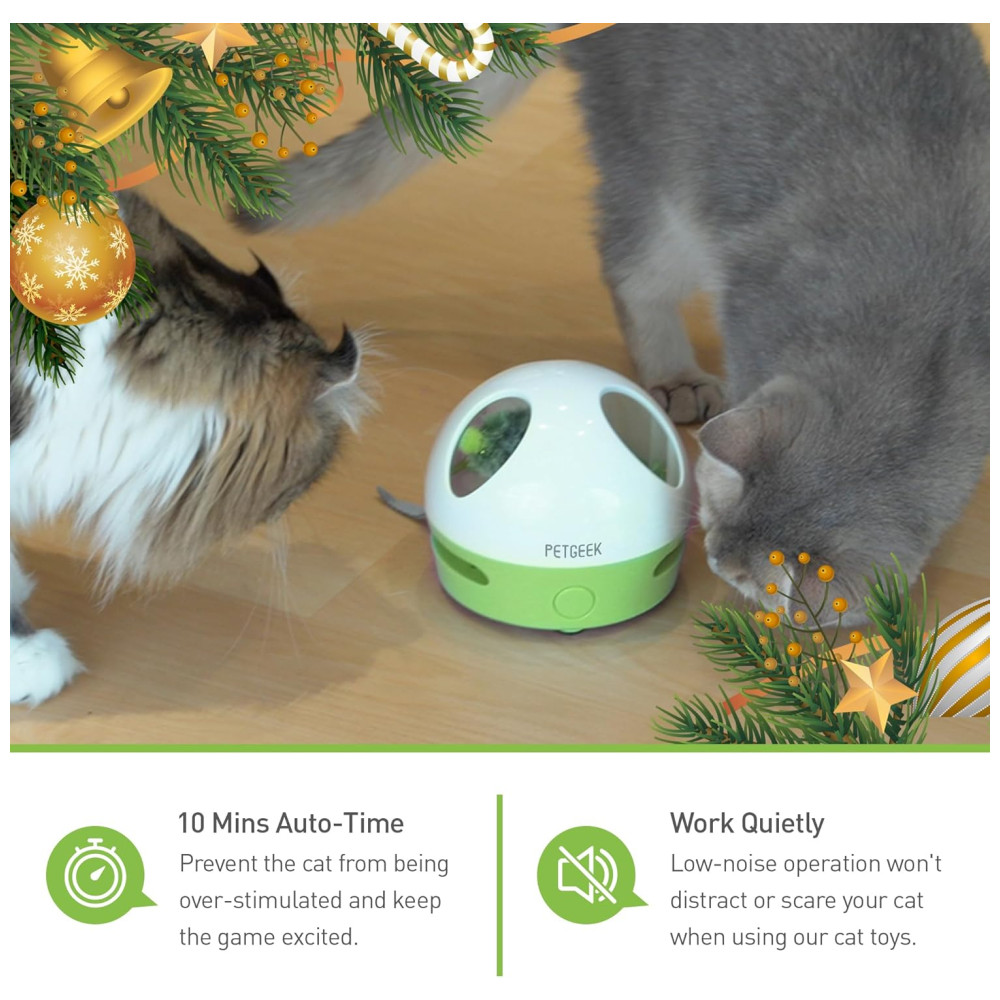 BRINQUEDO DE ENIGMA PARA GATOS E DURÁVEL O brinquedo automático para gatos PETGEEK é feito de material ABS ecológico durável, 100 e saudável para o proprietário e animais de estimação, de borracha na parte inferior podem evitar o deslizamento ou o movimento.