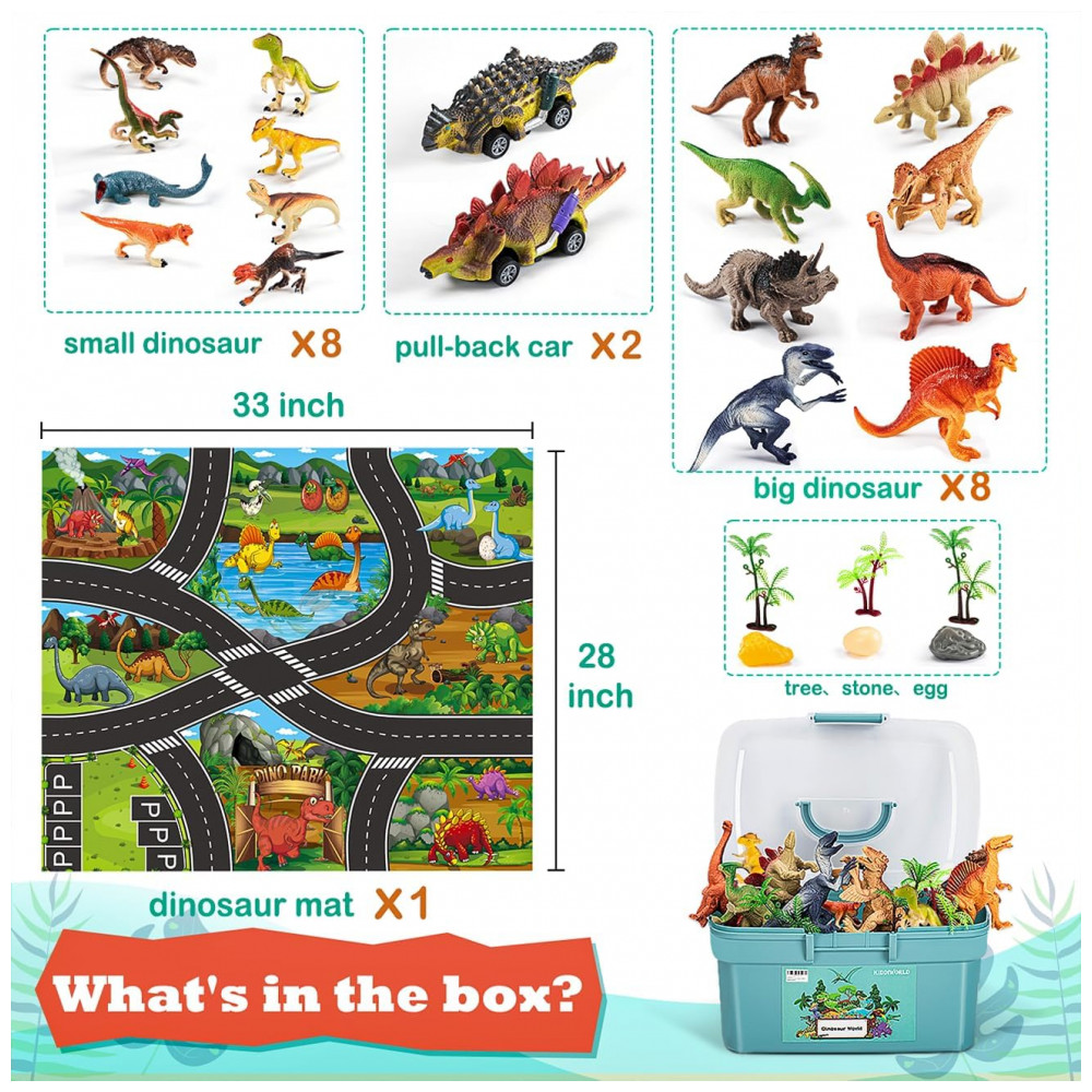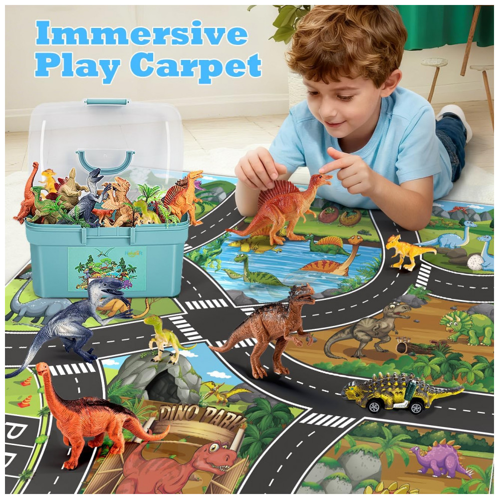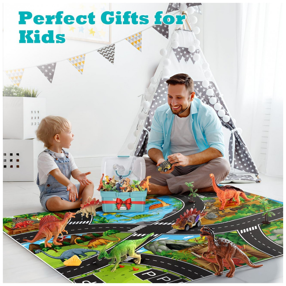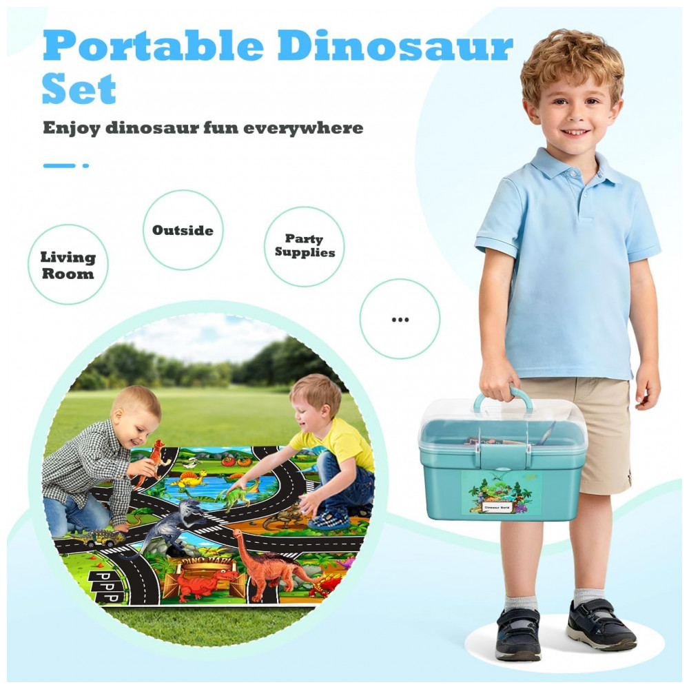 Os brinquedos educativos de dinossauros não são apenas um brinquedo, mas também um elo comunicativo para o compartilhamento. A caixa de grande capacidade torna o conjunto fácil de armazenar, e o tapete pode ser dobrado em um tamanho compacto, tornando o portátil para ambientes internos e externos e viagens. O conjunto de dinossauros é um presente perfeito para crianças, seja para aniversários, Natal ou feriados. Não perca a chance de surpreender seus filhos