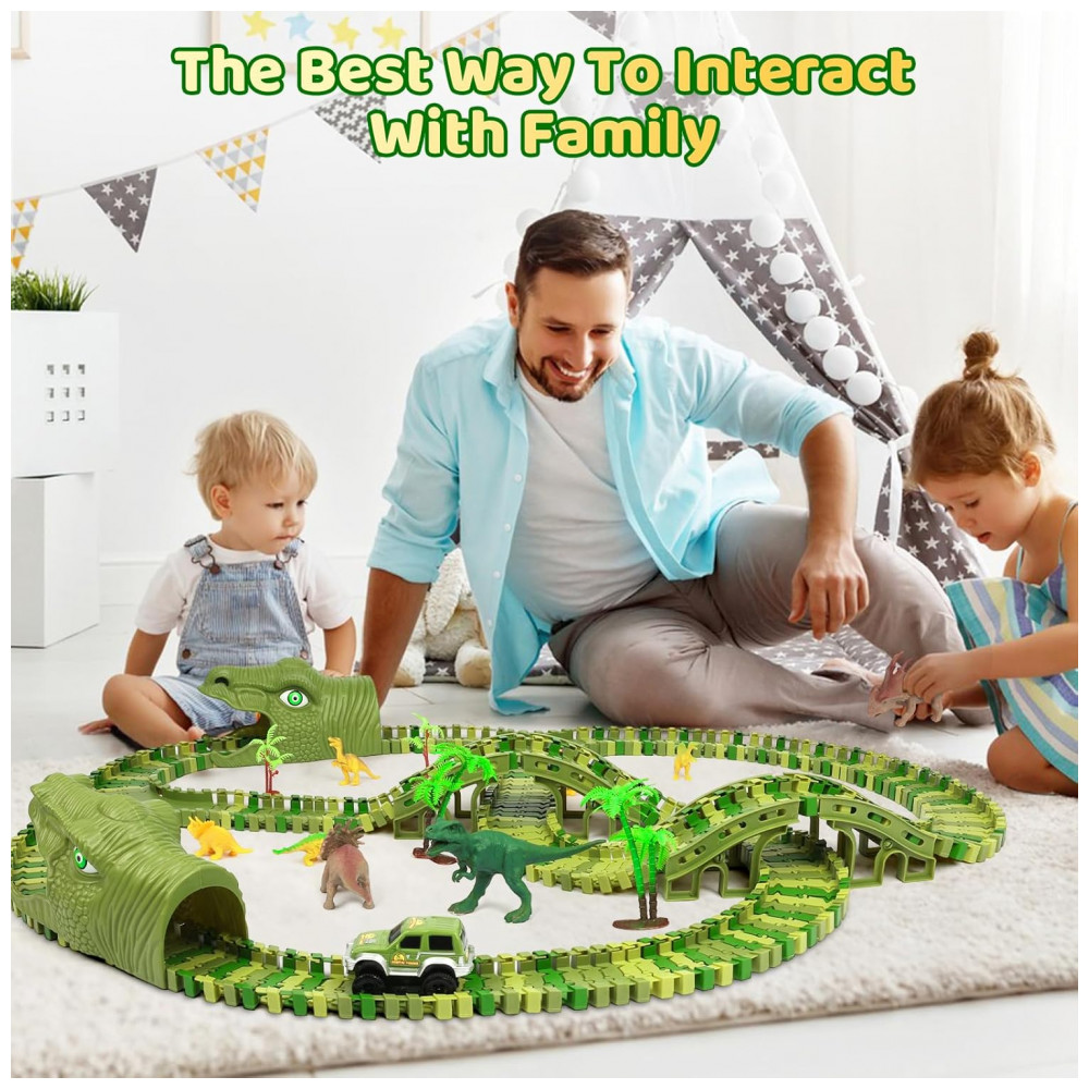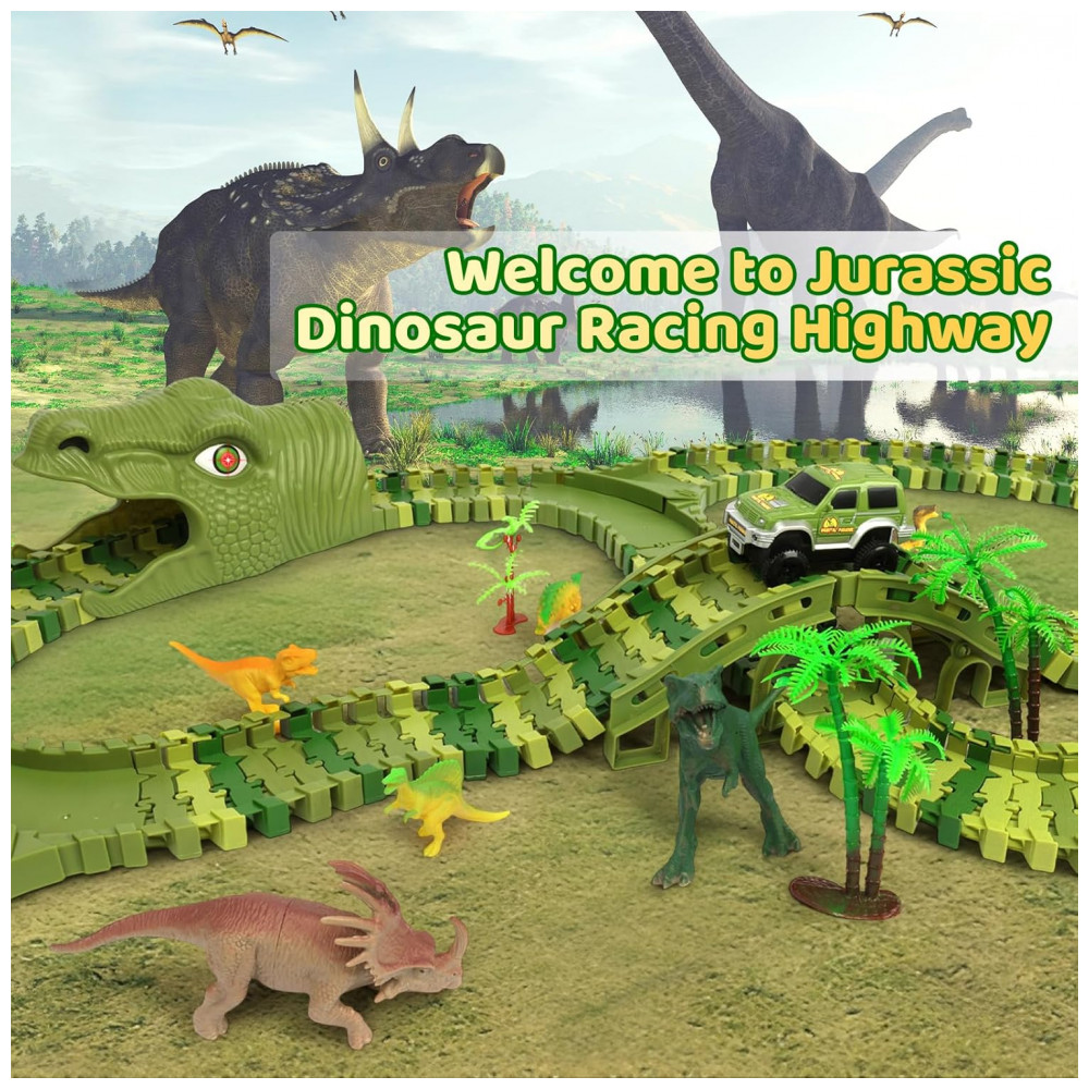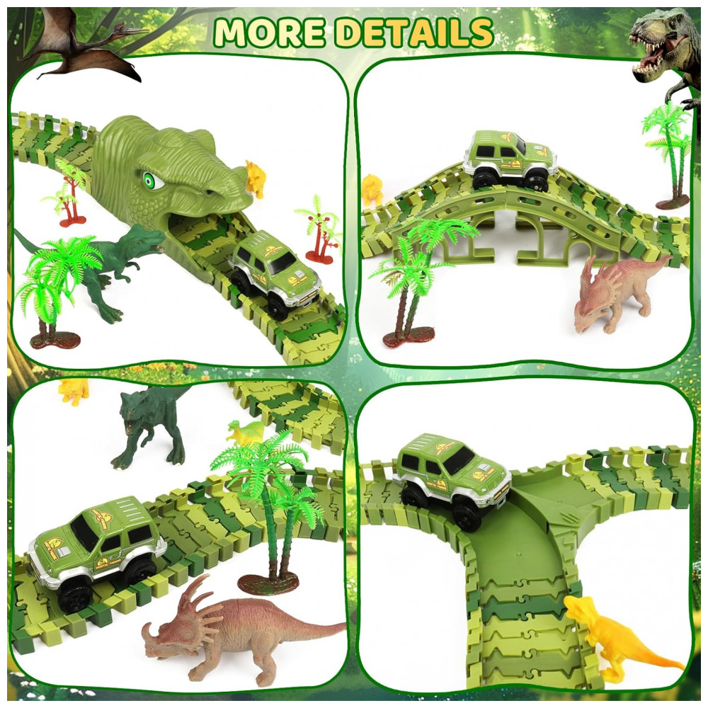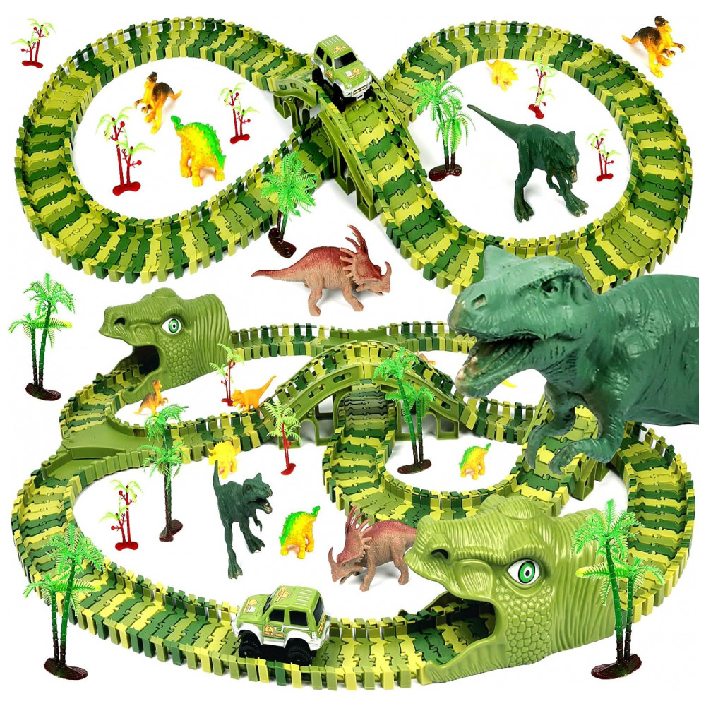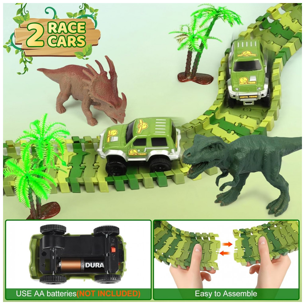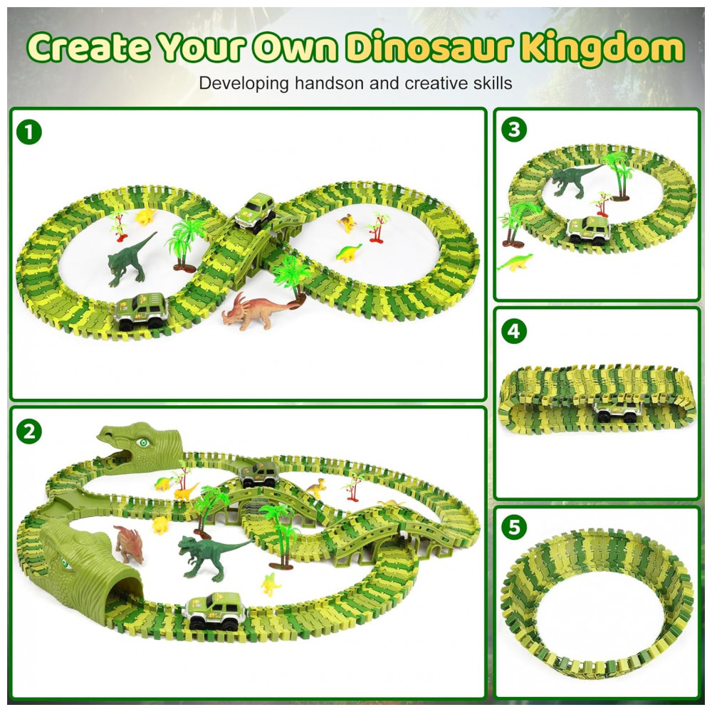 Brinquedos de Dinossauros para Crianças 266 Peças Crie um Mundo dos Dinossauros com Pistas de Corrida great dachong
