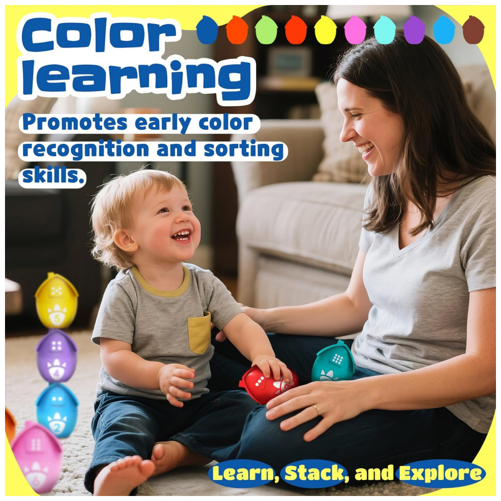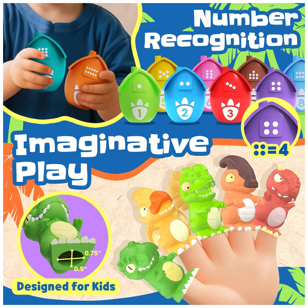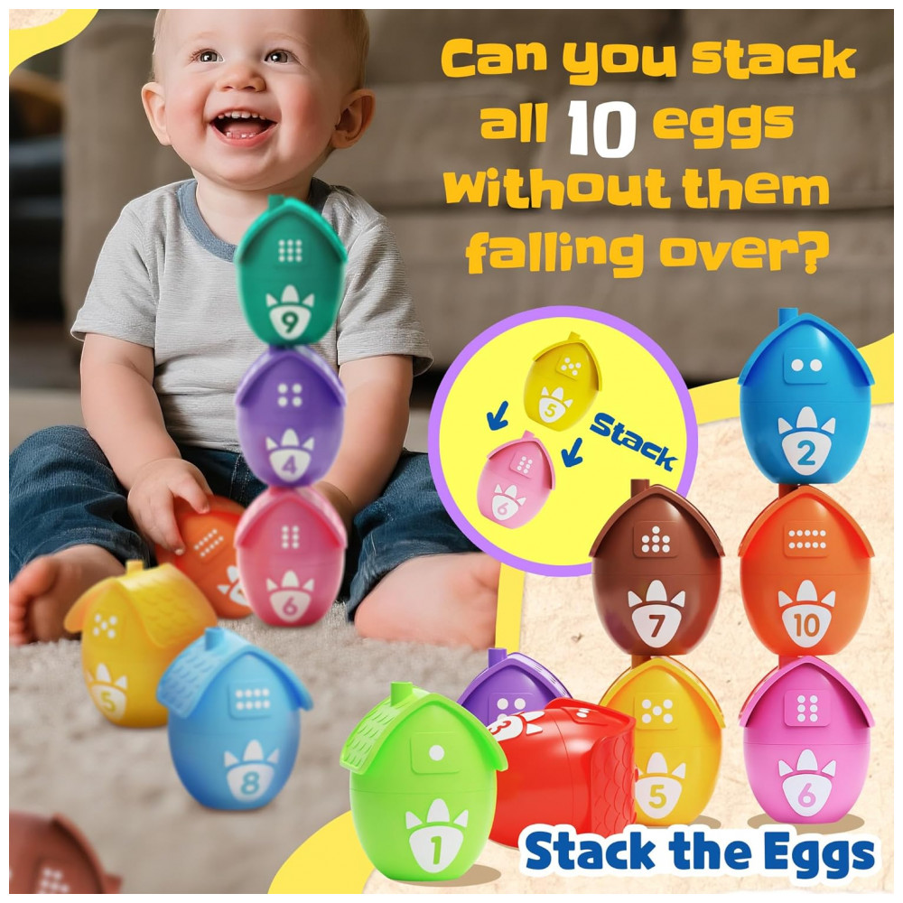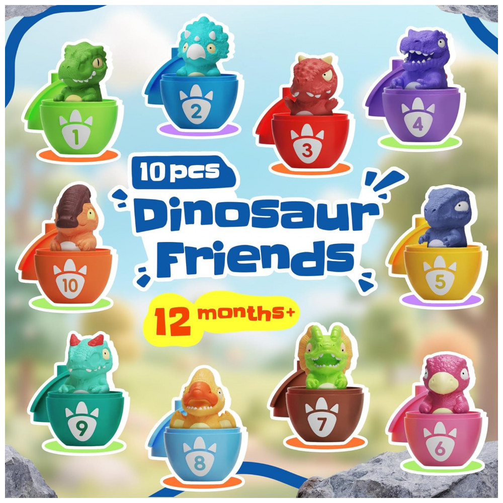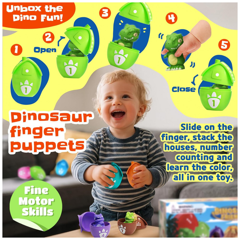 Brinquedos Educativos para Crianças de 1 a 3 Anos – Conjunto de Ovos com Dinossauros e Marionete para Aprender Contar e Empilhar – Zippytots