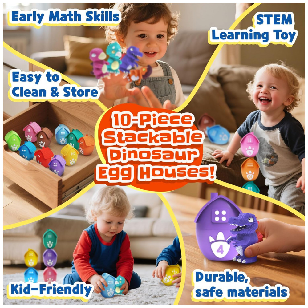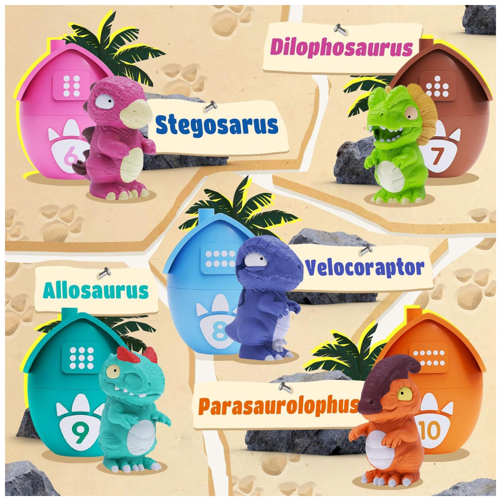 Este conjunto de brinquedos de dinossauros para crianças inclui 10 adoráveis dinossauros e 10 casas de ovos numeradas e vibrantes. Com cores vibrantes como TRex, Estegossauro, Espinossauro e mais, cada dinossauro é cuidadosamente projetado para despertar a curiosidade e imaginação das mentes jovens. Os ovos empilháveis incentivam a coordenação motora fina à medida que as crianças praticam colocar os dinossauros dentro ou fora dos ovos, desenvolvendo destreza por meio da exploração lúdica. Inspirado no método Montessori, este conjunto com casas de ovos numeradas de 1 a 10 e padrões correspondentes promove o reconhecimento de números, contagem, empilhamento, combinação de cores e habilidades de classificação — marcos essenciais no aprendizado infantil. Feitos de plástico ABS de alta qualidade, esses brinquedos de dinossauros são atóxicos, com bordas arredondadas, perfeitamente seguros para as mãozinhas. Resistentes a quedas e duráveis, garantindo diversão interminável! Ideal para inspirar mentes criativas, este brinquedo educacional é indicado para meninos e meninas de 1 a 3 anos. Uma adição versátil para lembrancinhas de festas, recheios de cestas e decorações festivas para alegrar toda ocasião!