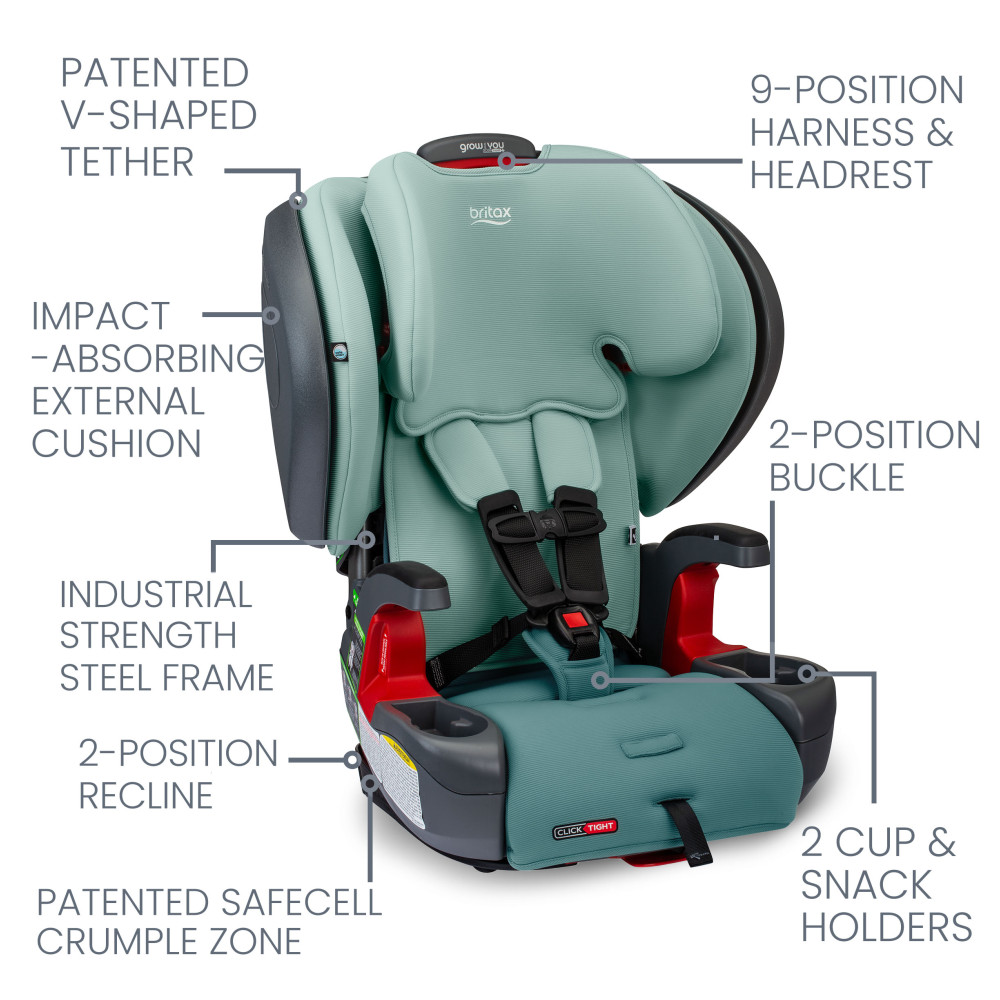 Escolha uma cadeirinha de carro infantil que cresça com seu filho, desde a infância até a idade de criança grande, com a cadeirinha de carro Britax Grow With YouTM ClickTightR Plus com arnês 2booster. Este assento elevatório com encosto alto começa como uma cadeirinha de carro com arnês de 5 pontos e se converte em um reforço de posicionamento do cinto que funciona com seus carros cinto de segurança Instale sempre com confiança Com a tecnologia ClickTight você sabe que está certo em 3 etapas fáceis, abra a fivela e feche