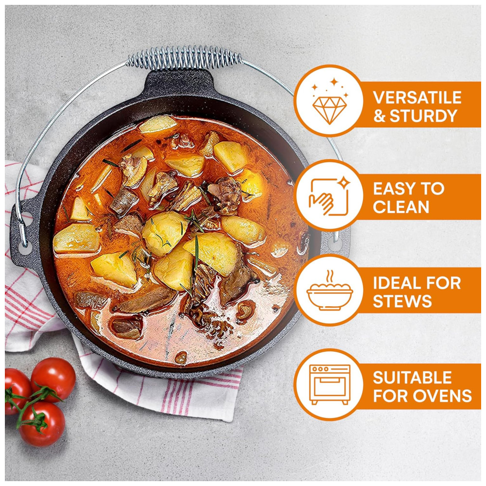 Bruntmor Panela de Ferro Fundido 4L Pré Temperada com Alça de Metal
