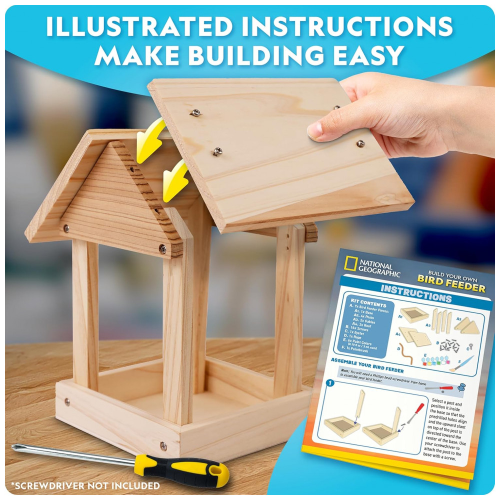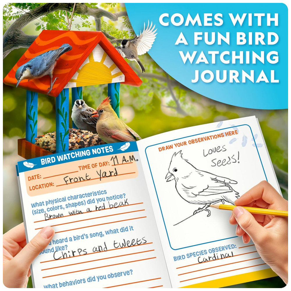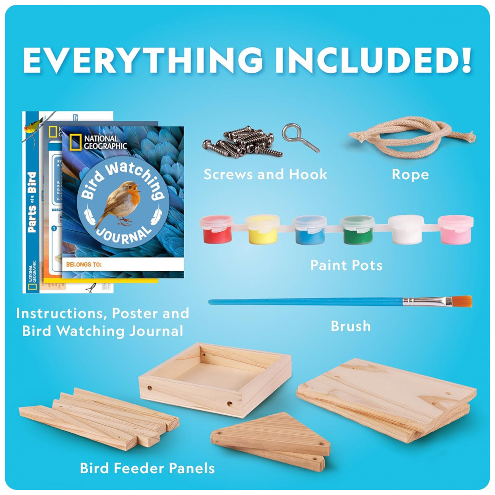 Build Your Own Bird Feeder Kit Multicolor – Casa‑de‑Pássaros DIY em Madeira com Pintura Diário de Observação e Pôster Educativo National Geographic