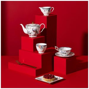 Inspirado nos padrões da Chinoiserie, o bule evoca o romance e a maravilha de terras distantes. Feito de porcelana fina, ele oferece resistência superior e pode ser lavado na máquina de lavar louça utilizando detergentes recomendados.