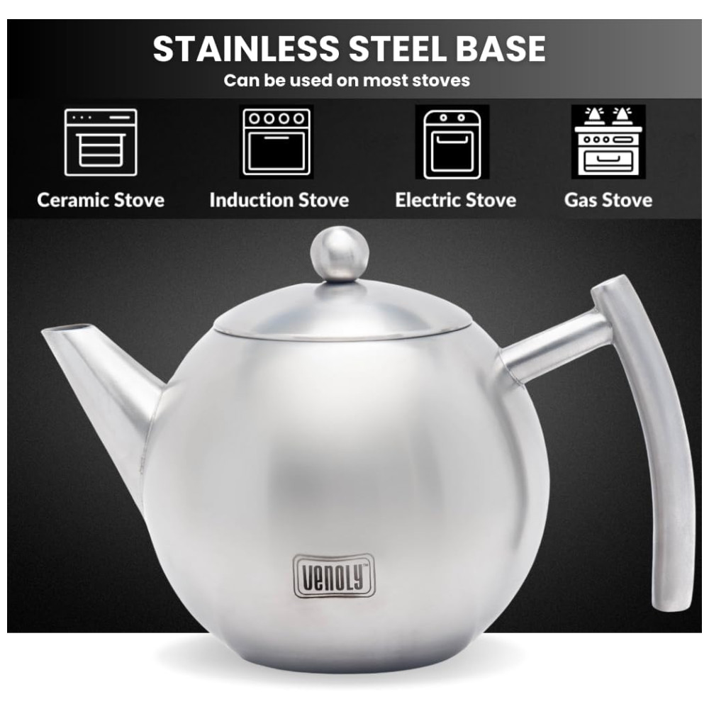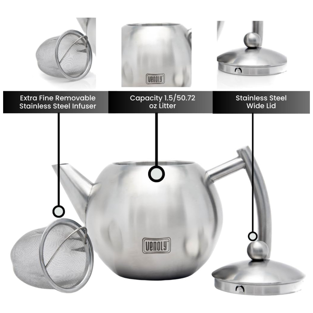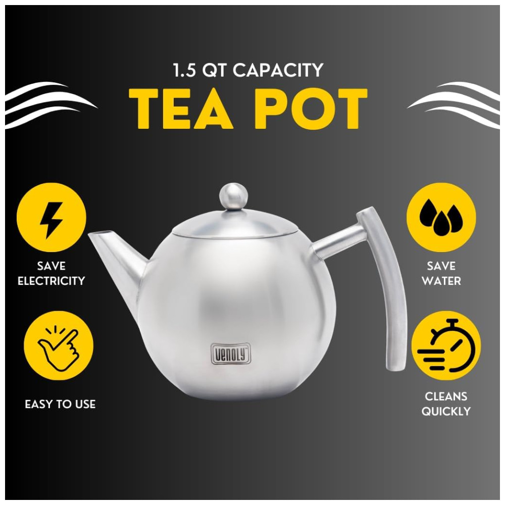 Bule de chá de aço inoxidável VENOLY T0102 5A Prateado